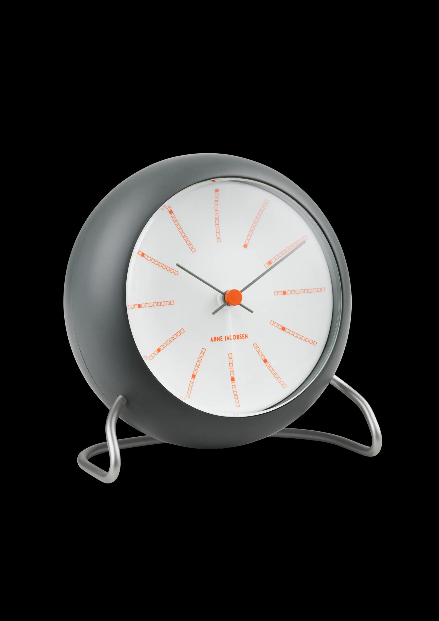 Arne Jacobsen utmerket seg som en arkitekt som lagde total design når han tegnet bygninger. I 1971 tegnet Arne Jacobsen National Banken i København. Til den vakre marmor kledde bygningen, tegnet Arne Jacobsen Bankers uret. Designet var moderne for sin tid og er det fortsatt. Den grå matte overflaten på uret er en hyllest til Arne Jacobsens favoritt materiale, nettopp den grå marmoren som National Banken er kledd i. De oransje detaljene er en moderne fortolkning av den røde prikken.