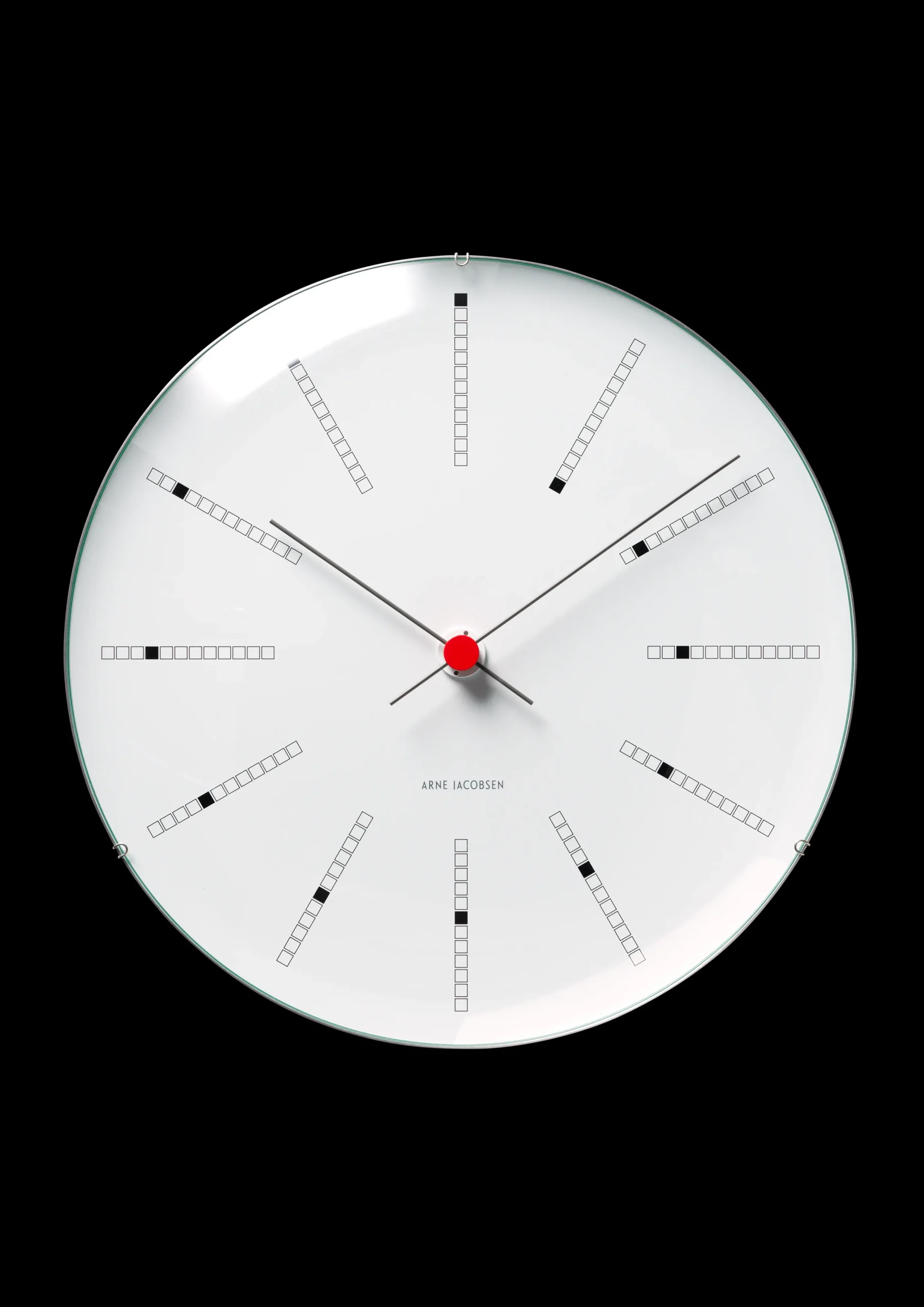 Da Arne Jacobsen skapte veggklokken Bankers Clock til Danmarks Nationalbank i 1971, skapte han samtidig et designikon til boligen. Veggklokken finnes i 4 størrelser og produseres i dag tro mot de originale tegningene. Denne på 29 cm er den nest største. Urkassen, som holder den konkave glassfronten, gir klokken et svevende uttrykk på veggen. En god gaveide til bryllup, jubileum, fødselsdag, studenten og andre spesielle anledninger.