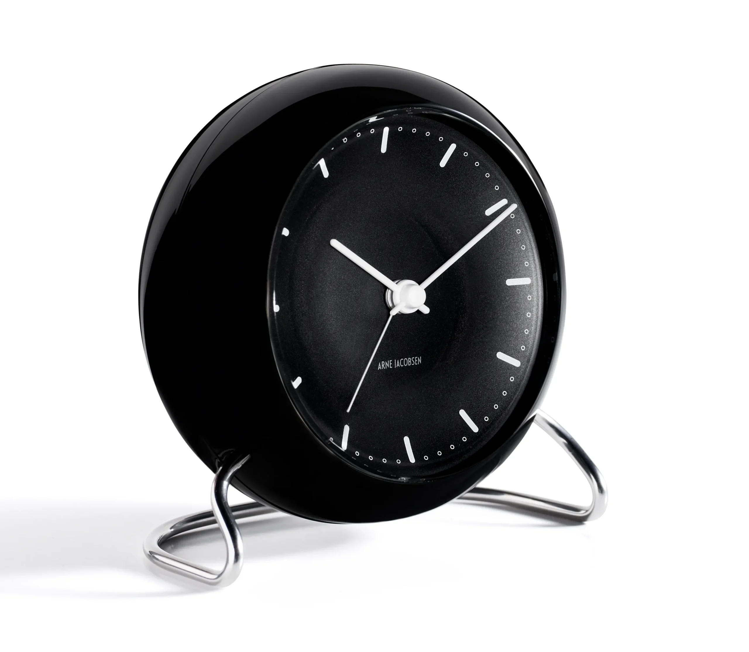 Den verdenskjente arkitektens bordklokke med alarm er skapt i 1939. Det grafiske uttrykket og metallfoten med tydelig inspirasjon fra Myren og Syverstolen gjør klokken til en opplagt gaveide til designelskere. Klokken passer inn overalt i den moderne boligen, og med de oppdaterte funksjonene som snooze og lyssensor er det en effektiv vekkeklokke på nattbordet.