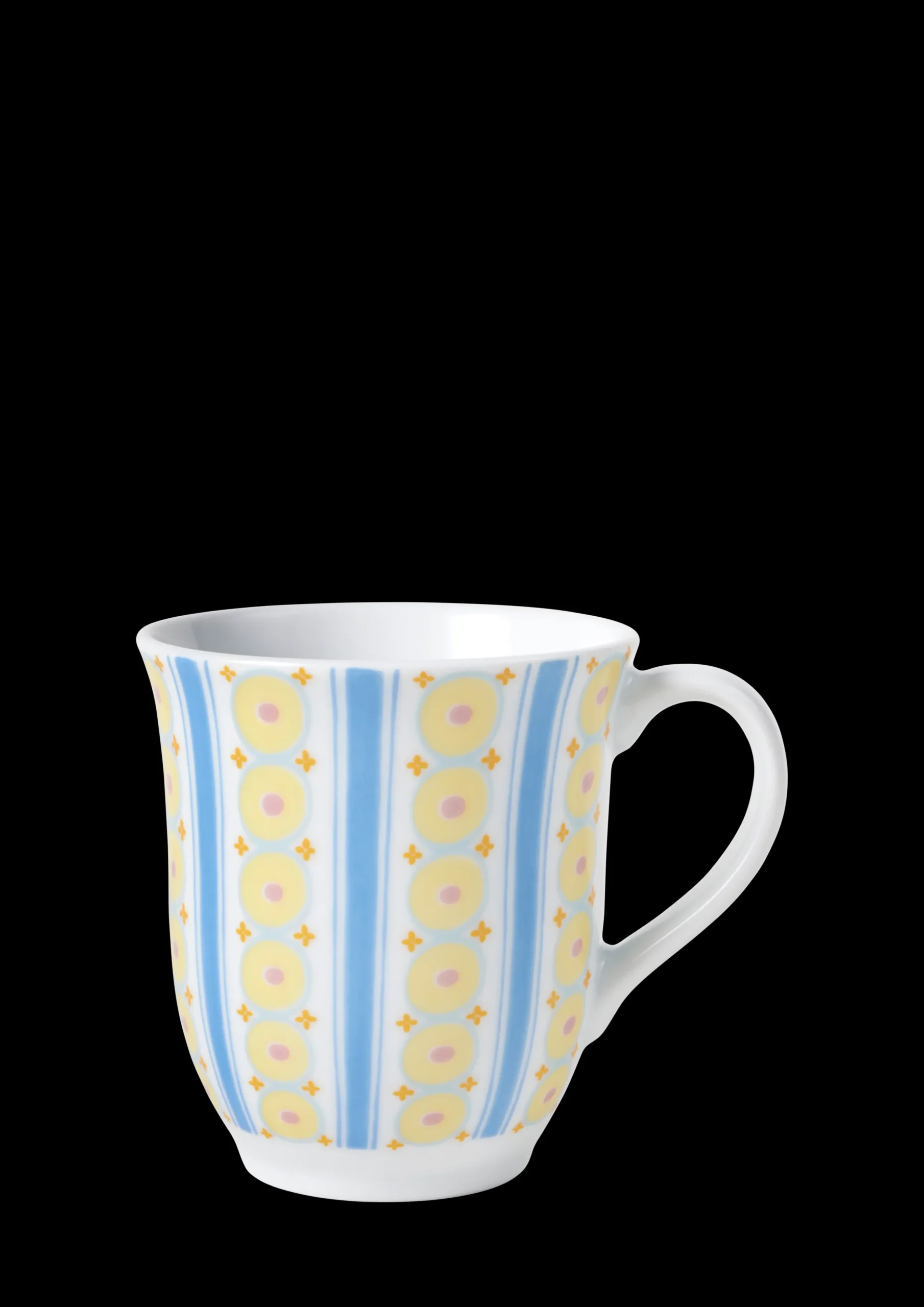 Bjørn Wiinblads stil er alt annet enn minimalistisk. Den er overdådig, særpreget og vidunderlig – og i høy grad definert av livlige farger og en unik stil. Du finner også mange av hans særpregede og kunstneriske dekorasjoner på Eva-krusene fra Bjørn Wiinblad. Designen er et virvar av farger og geometriske former med et håndtegnet preg, som på en eller annen måte passer perfekt sammen. Krusene i blå nyanser har virvlende striper hele veien rundt, innrammet av vertikale blå striper og oransje prikker. Mønsteret er inspirert av Eva-vasens ulike kjoler, og fargene holdes i de samme delikate nyansene som kjennetegner Evas glade og vennlige univers. Kruset rommer 35 cl – perfekt til en god kopp kaffe eller te. Det kan selvfølgelig vaskes i oppvaskmaskin. Du har sikkert andre ting å bruke tiden din på enn å vaske opp for hånd. Hvert krus har sin egen personlighet og fargepalett, men har likevel et tydelig slektskap takket være Bjørn Wiinblads gjenkjennelige strek. Eva-kruset bringer glede til bordet og hyllen, der det tilfører litt mer lys og farge til dagen din – akkurat slik Bjørn Wiinblad elsket det.