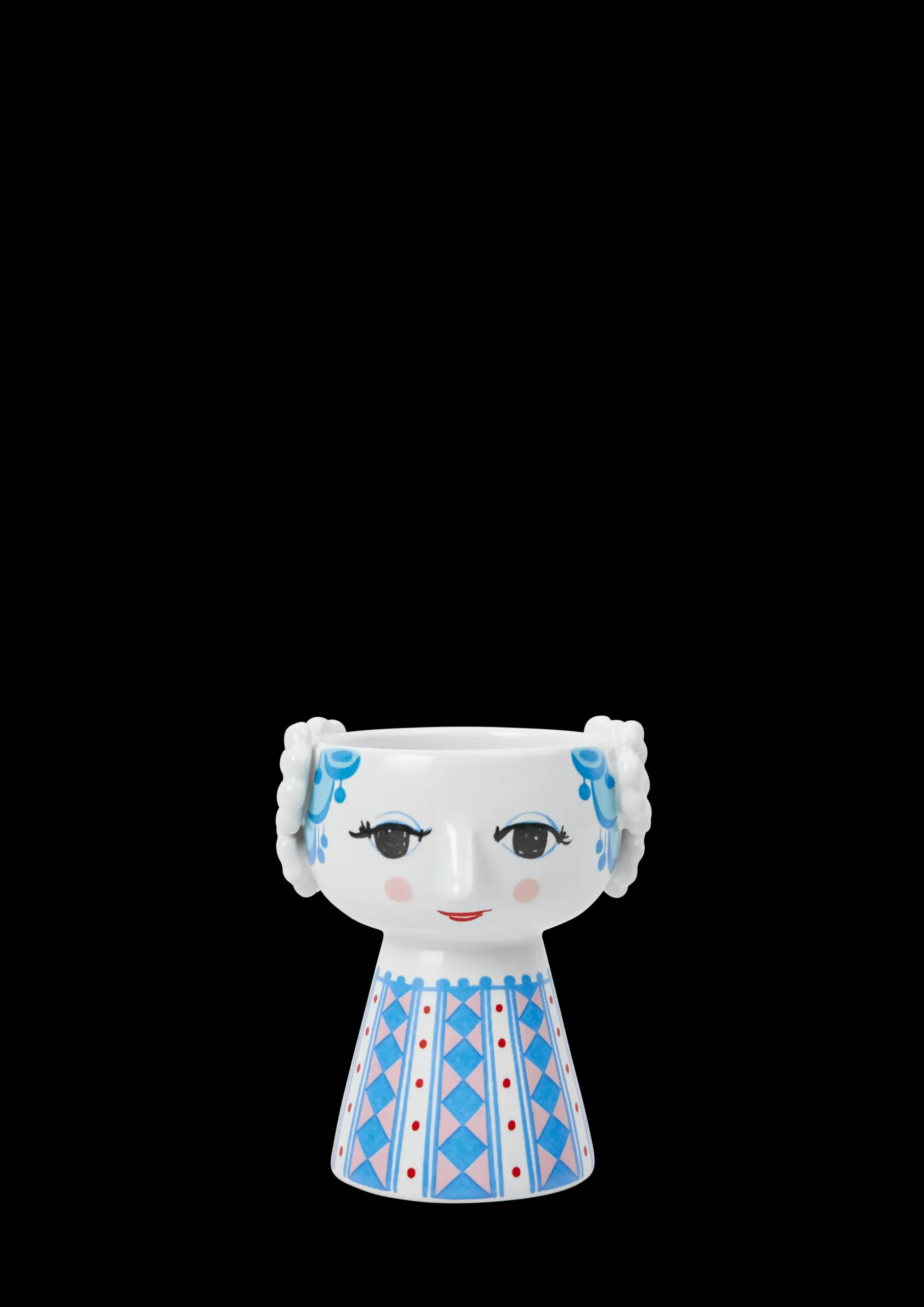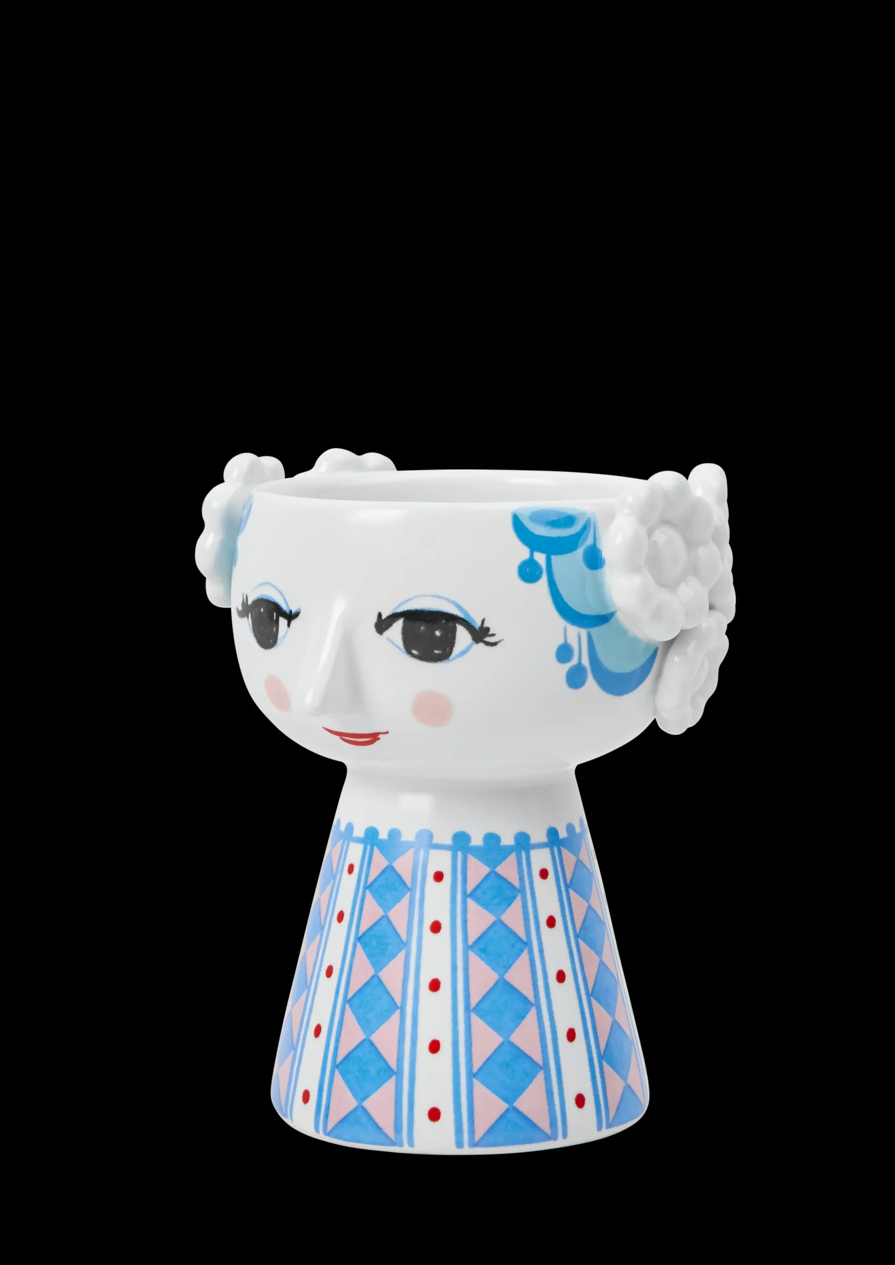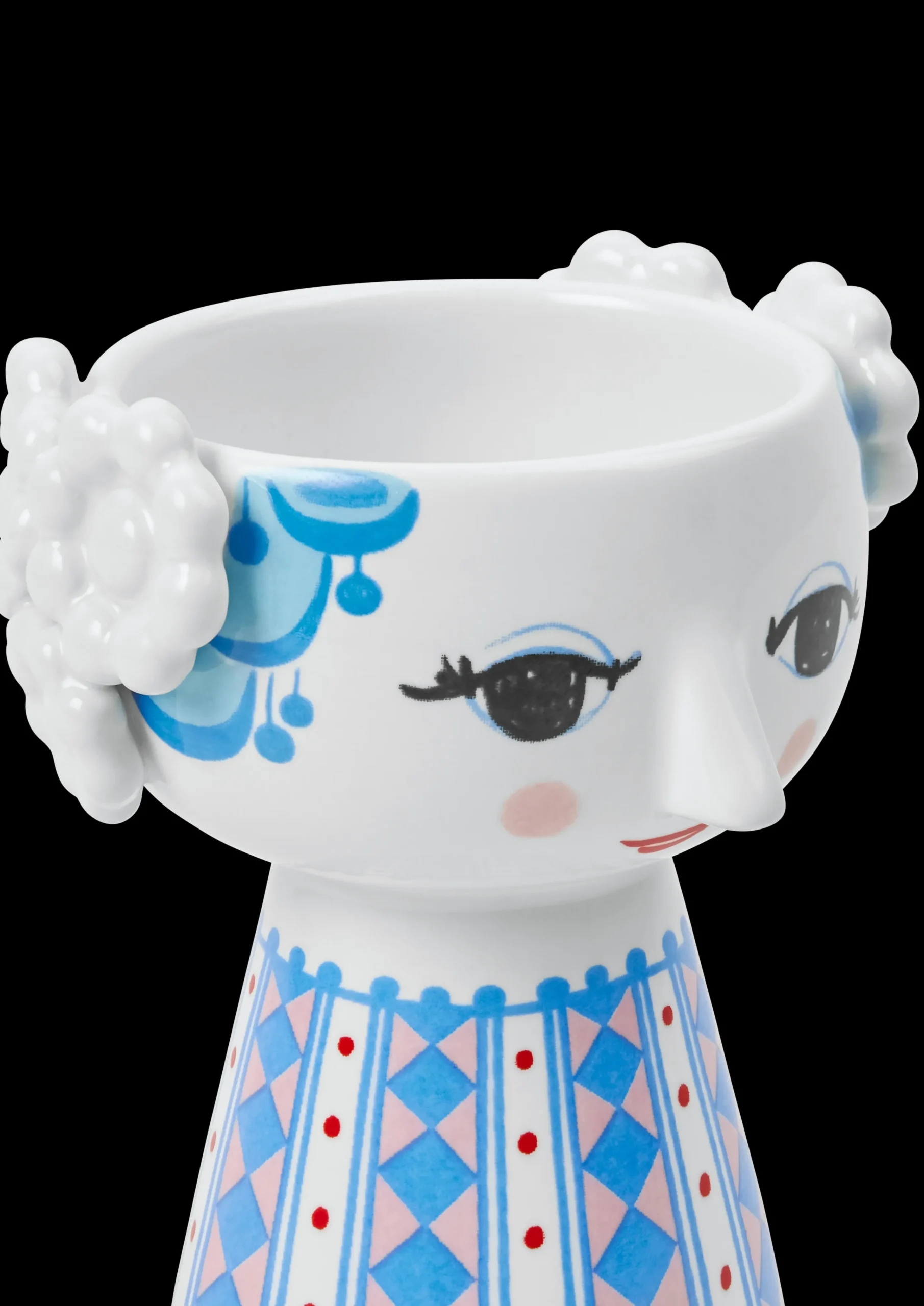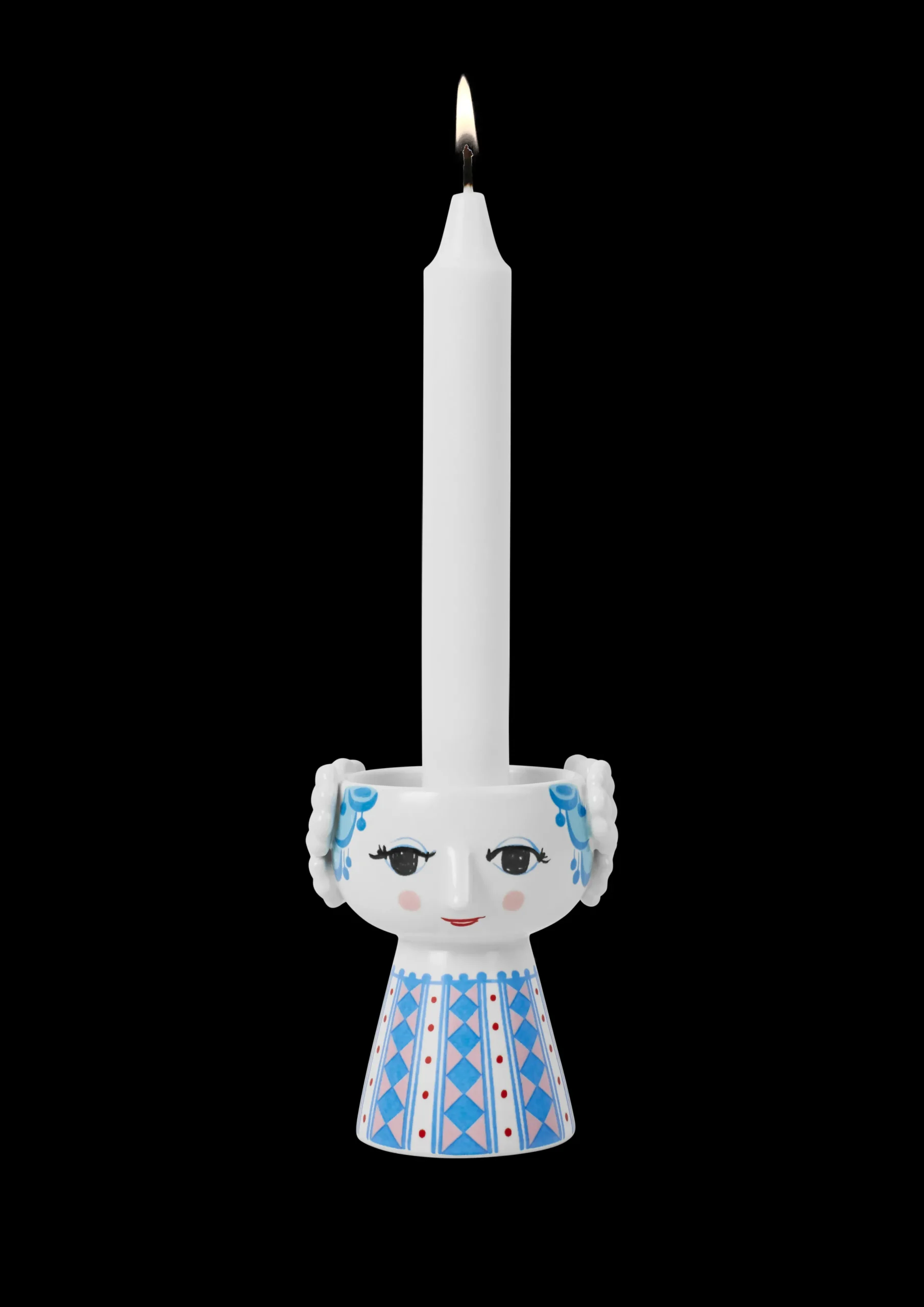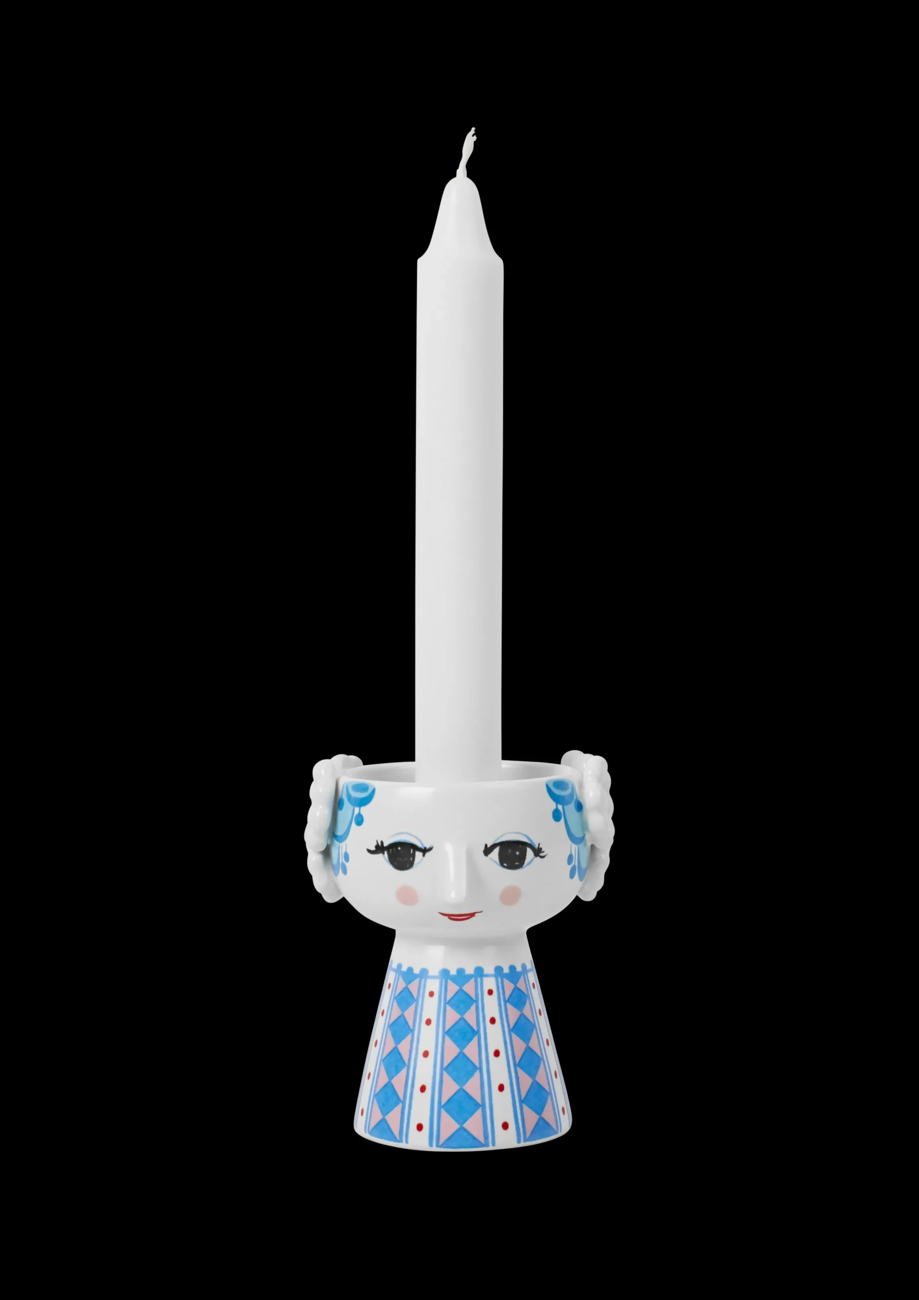 Bjørn Wiinblads stil er alt annet enn minimalistisk. Den er overdådig, original og vidunderlig – og sterkt definert av livfulle farger og en unik look. Du finner også mange av hans særpregede og kunstneriske dekorasjoner på Eva-lysestakene. Designen er en sann blanding av farger og geometriske former med en håndtegnet følelse som på en eller annen måte passer perfekt sammen. Med denne vakre Eva-lysestaken fra Bjørn Wiinblad i en flott blå nyanse kan du utfolde deg med særpreget design hvor som helst i hjemmet. Lysestaken har en høyde på 9,5 cm og en diameter på 8 cm. Den er dekorert med blått hår og en fargerik kjole med et vakkert diamantmønster i blå og rosa nyanser, supplert med rader med røde prikker. Eva-lysestaken utstråler en forkjærlighet for overdådighet og er perfekt til både telys og stearinlys – eller alene som en liten skulpturell dekorasjon i innredningen. Eva-lysestaken sprer glede på bordet eller hyllen og tilfører litt mer lys og farge til hverdagen – i ekte Bjørn Wiinblad-stil. Bjørn Wiinblad var en munter kunstner med en stor og fargerik personlighet som gjorde ting på sin måte og som ikke var redd for å drømme og tenke stort. Hans ånd vises i den unike Eva, som oppmuntrer oss til å uttrykke vår egen stil og personlighet i interiøret vårt. En ting er sikkert: Livet blir aldri kjedelig når Eva flytter inn.
