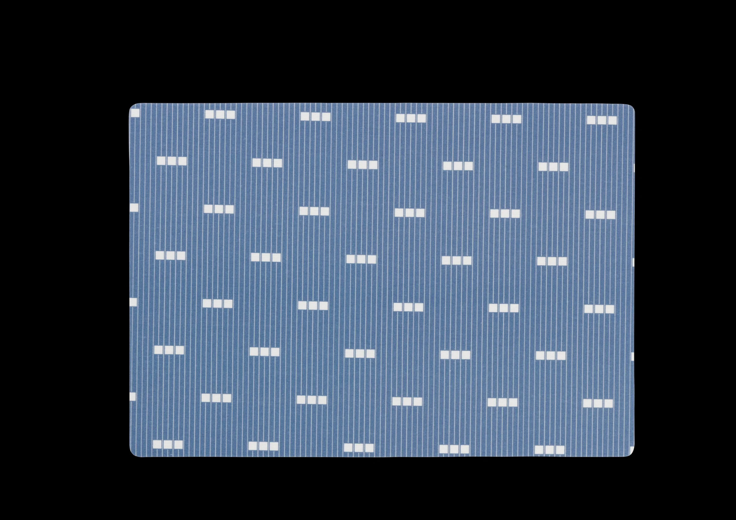 Vakker, himmelblå dekkebrikke med fint mønster bestående av små, hvite linjer og firkanter. Dekkematten er en del av JUNA sin Tribe-serie og er laget av 50 % bomull og 50 % polyester med akryl, noe som gjør den superenkel å holde ren. Det må bare tørkes av med en fuktig klut. I tillegg til å være enkel å rengjøre, beskytter bordmatten også spisebordet ditt mot kokeplater, da baksiden er dekket med skum.