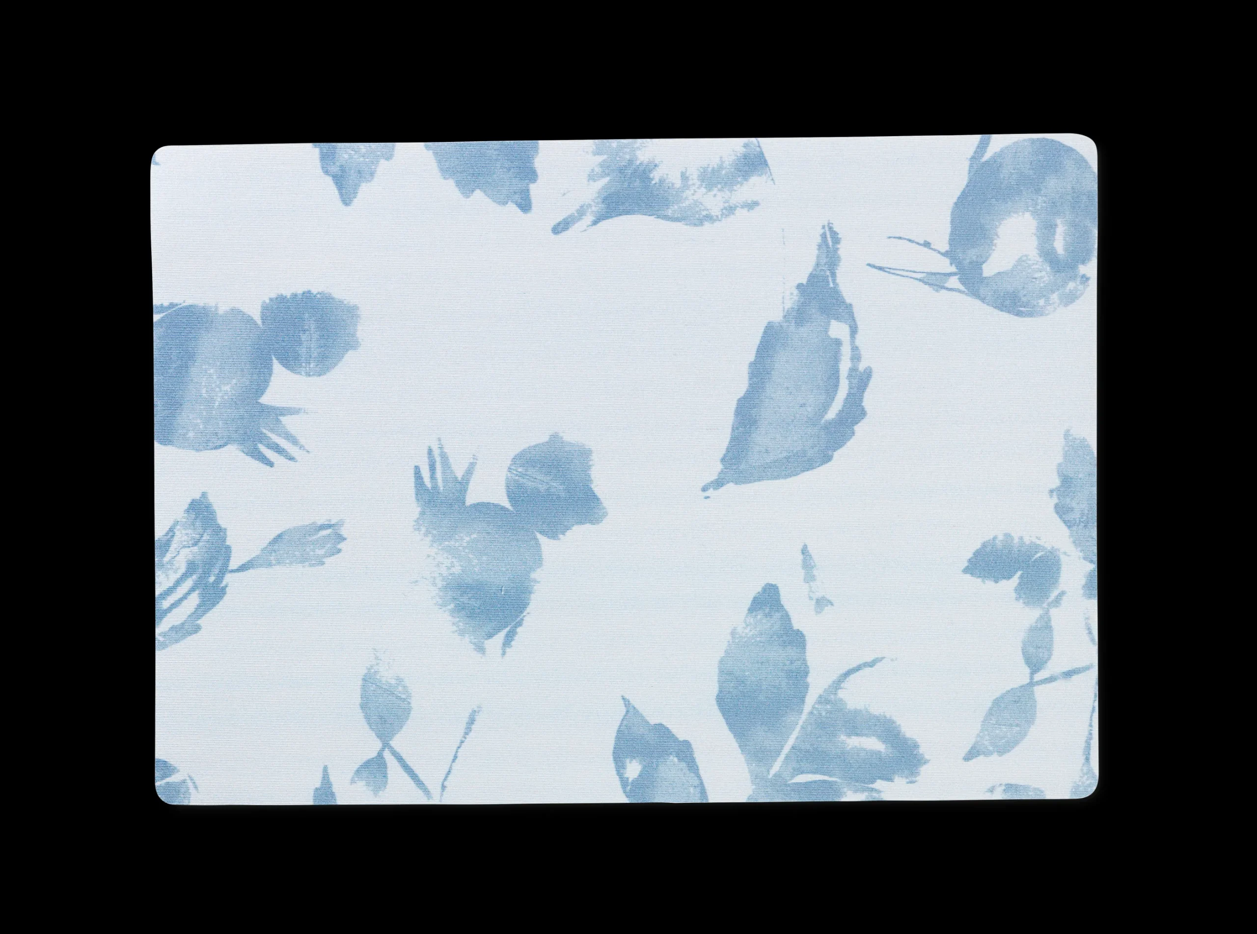 Den blå Hiprose dekkebrikken med trykk av nypeblomster og nypeblader er designet av Ditte Vestergaard Guldbrandsen for JUNA. Den vakre duken måler 43 x 30 cm og er laget av 50 % bomull og 50 % polyester med en akryl overflatebehandling som sørger for enkel rengjøring av duken, som bare må tørkes av med en fuktig klut etter behov. Hiprose dekkematten har også en skumbakside, slik at den sitter godt på overflaten.