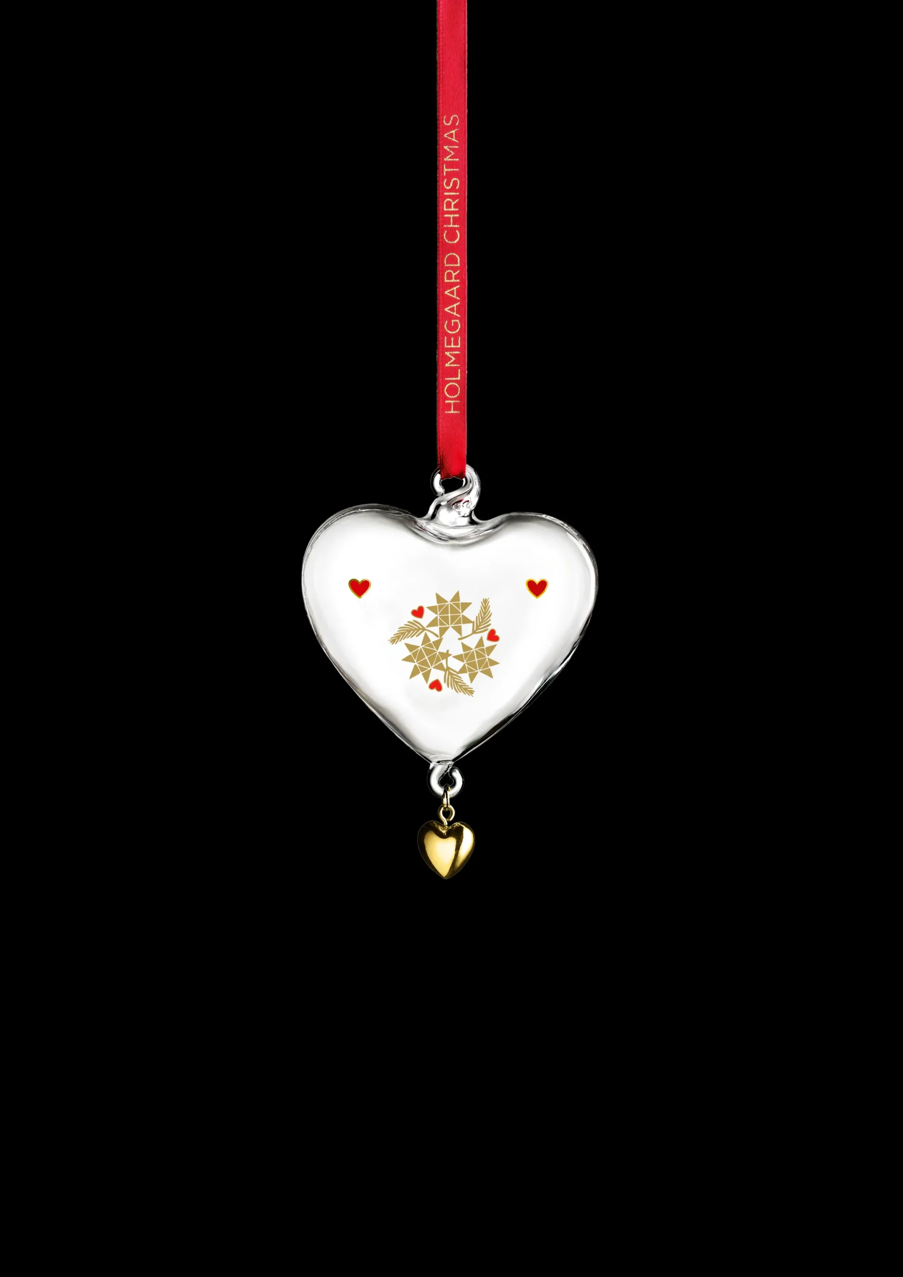 År etter år skaper Holmegaards glasspynt nye minner gjennom refleksjoner i glass. Holmegaards årlige juleklokke, hjerte og stjerne laget i munnblåst glass er i noen hjem blitt et vanlig samleobjekt. Bak den elegante hengepynten står den danske designeren Ann-Sofi Romme, som i 1993 skapte den første Holmegaard-juleklokken med motiv. Og siden den gang er det blitt til en hel kolleksjon bestående av klokker, hjerter, stjerner og kuler i munnblåst glass, som hvert år får et nytt, vakkert julemotiv – 2024-kolleksjonen har den flettede papirstjernen som symbol på julehyggen. Årets lille julehjerte 2024 fra Ann-Sofi Romme er 8 cm høyt, prydet med en flettet stjerne og kommer som alltid i munnblåst glass. Fargene er holdt klassiske i rødt og gull og med en avsluttende metallisk finish, og de små, røde hjertene skaper en hyggelig stemning til hjertenes fest. Den grafiske dekorasjonen er helt i tråd med både juletradisjoner og tidens fargetrend med matchende røde silkesnorer som innbyr til oppheng på treet, i vinduet eller på grangrener rundt omkring i hjemmet sammen med resten av den nostalgiske serien.