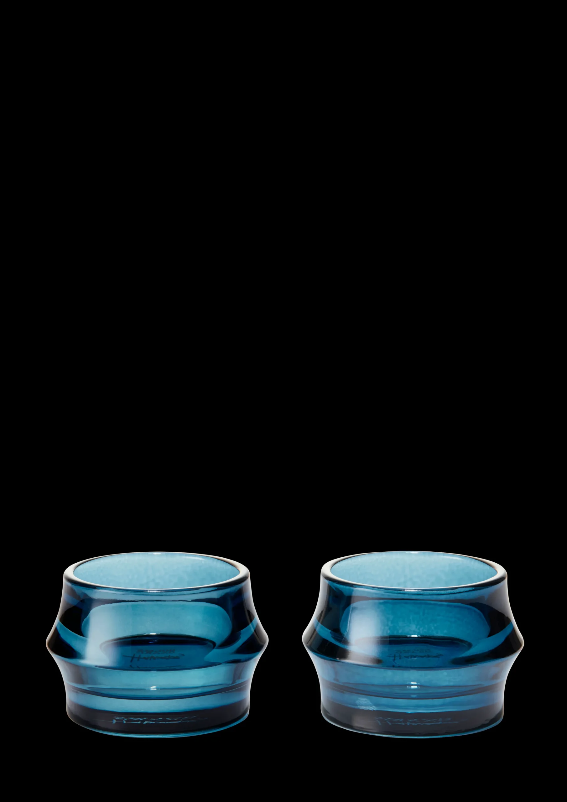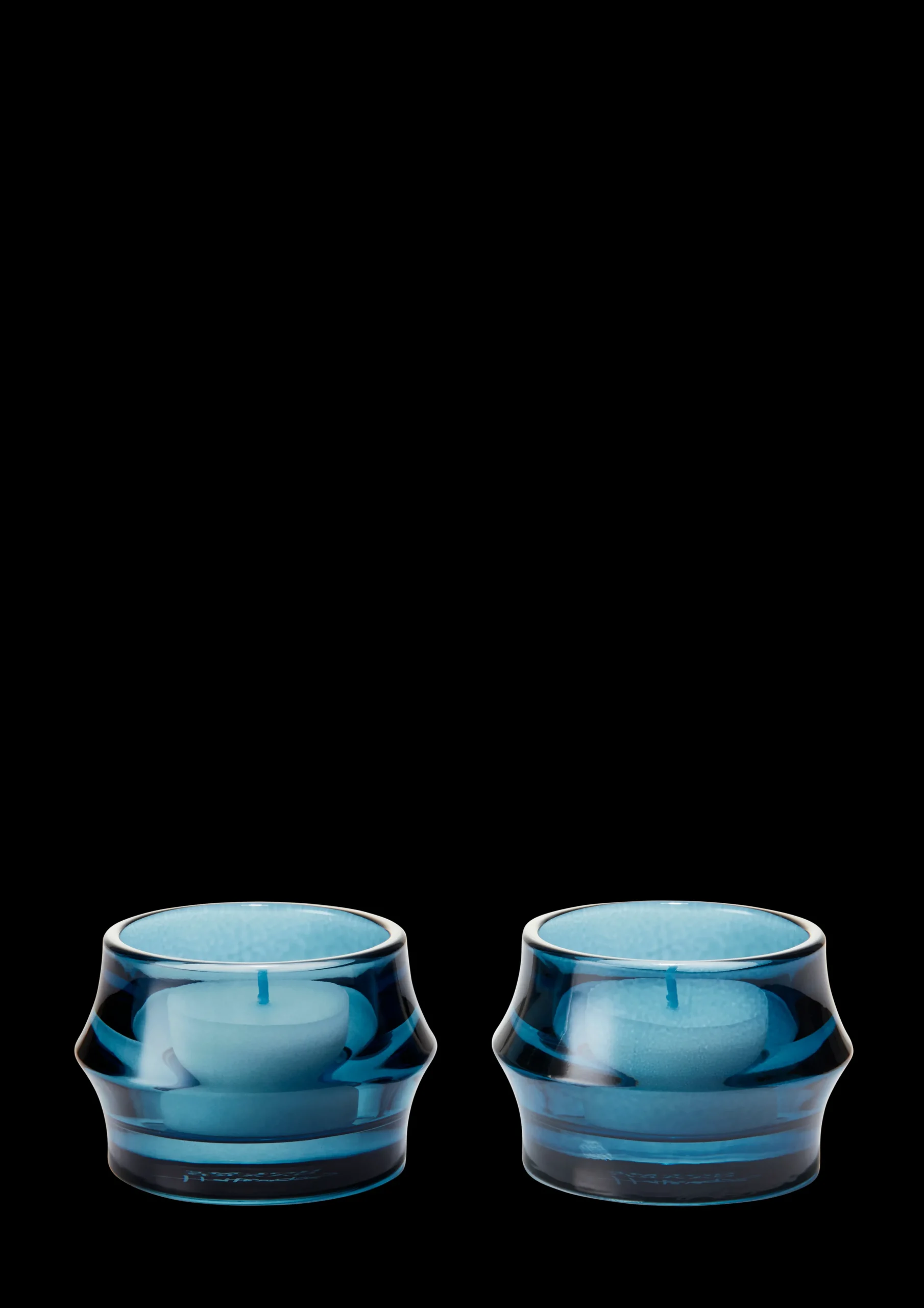 Med ARC-telysholdere og resten av ARC-serien har industridesigner Sebastian Holmbäck virkelig flyttet grensene for hvordan et kontrastfylt designspråk kan skape et innovativt produkt som også gjenspeiler essensen av Holmegaards klassiske designhistorie. De stilrene ARC-telysholderne er laget av mørkeblått, håndpresset glass og har en design som reflekterer lyset på en vakker måte. Når flammens behagelige glød sprer seg og møter glassets myke konturer, skaper det en liten oase av ro der du ganske enkelt kan overgi deg til glassets skjønnhet og magi. Telysholderne selges i pakker på to og har samme kontrastfylte design som vasene, urtepottene og lyktene i ARC-serien, men de gjenkjennelige buene er skalert ned i størrelse slik at de passer perfekt til telys. Topp og bunn har samme diameter på alle design i ARC-serien, mens ringen i midten er litt større. Dette skaper tre parallelle sirkler i vakker symmetri. Selv om telysholderne bare måler 5 cm i høyden og har en diameter på 7 cm, skaper de buede formene og skarpe kantene en flott effekt når flammen tennes og ses gjennom det håndpressede glasset.