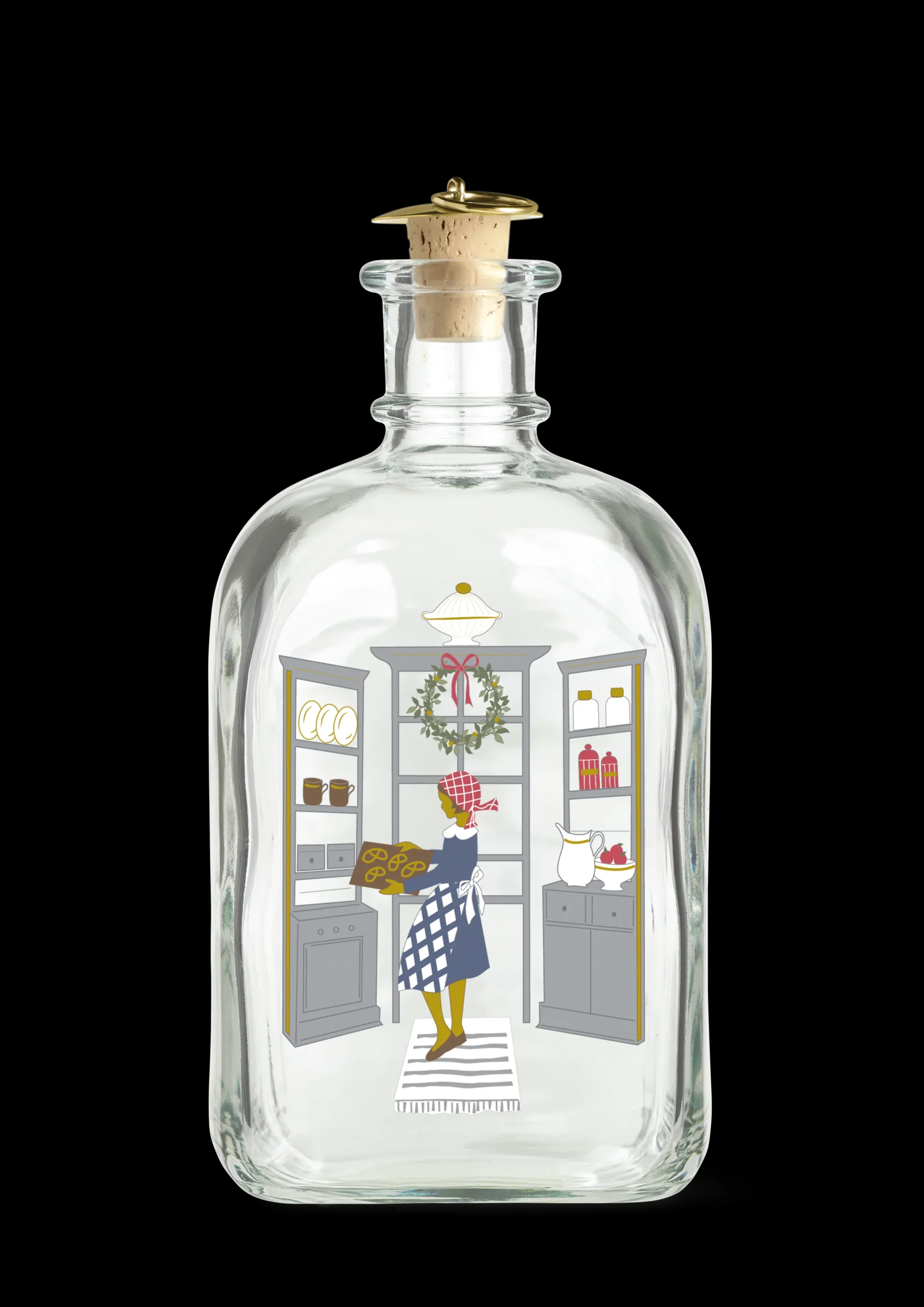 En følelse av jul som i gamle dager. Med kunstner Jette Frölichs nostalgiske og mesterlige papirklipp inviterer Holmegaard Christmas deg med inn på julekjøkkenet, som stemningsfullt og levende rammer inn en nostalgisk og hyggelig julestemning. Opplev den ikoniske Holmegaard Christmas-juleflasken i 2024-utgaven og nyt kombinasjonen av Holmegaards refleksjoner i glass og Jette Frölichs originale og kunstneriske univers, mens du ønsker julen velkommen med familie og venner. Juleflasken er 21 cm høy og rommer 73 cl – perfekt til årets hjemmelagde juledram. I 2024-motivets univers tar Jette Frölich oss med inn i hjemmets hjerte: kjøkkenet. I desember er det her magien skjer når det skal bakes julekaker og lages julemat, som vi har gledet oss til smaken og duften av helt siden forrige jul. Men kjøkkenet er ikke bare et sted der all verdens julegodteri blir produsert. Det er også her vi hygger oss og er sammen. Det er her vi pakker inn gaver, her vi tenner adventskransen og her vi får litt varm drikke når frosten biter utenfor. Her kommer bakverket duftende ut av ovnen, mel og sukker står fremme, juleeplene ligger til pynt i skåler, og kosen er komplett med hyasinter i glass og julekranser i vinduene. Holmegaard Christmas Juleflaske tåler ikke oppvaskmaskin.