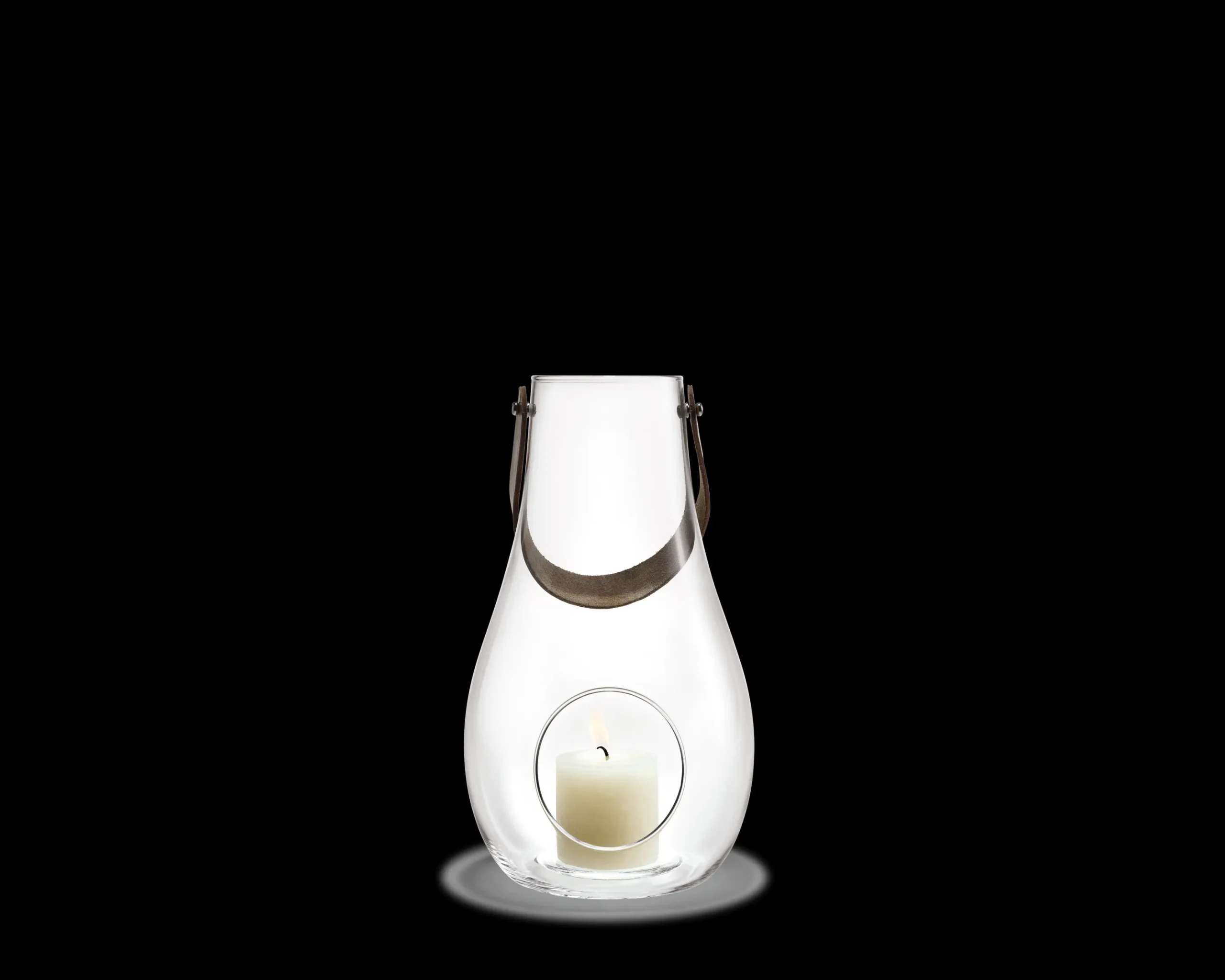 Bruk Design with Light lanternen hele året. Til sommerkvelder på terrassen, til dekorasjon på gulv, bord, trapper og vinduer – og som en stilfull juledekorasjon tilsatt et par kongler, gran og kanelstenger i bunnen. Maria Berntsen har skapt den mobile lyskilden i glass og kjernelær til å spre hygge i skandinavisk stil. Denne lanternen er 29 cm høy, men den finnes også i en liten versjon på 16 cm, en mellomversjon på 24,8 cm og en gulvversjon på 45 cm. Lanternene finnes i både klart og frostet glass og er fine å kombinere. En fin gaveidé til en spesiell anledning.