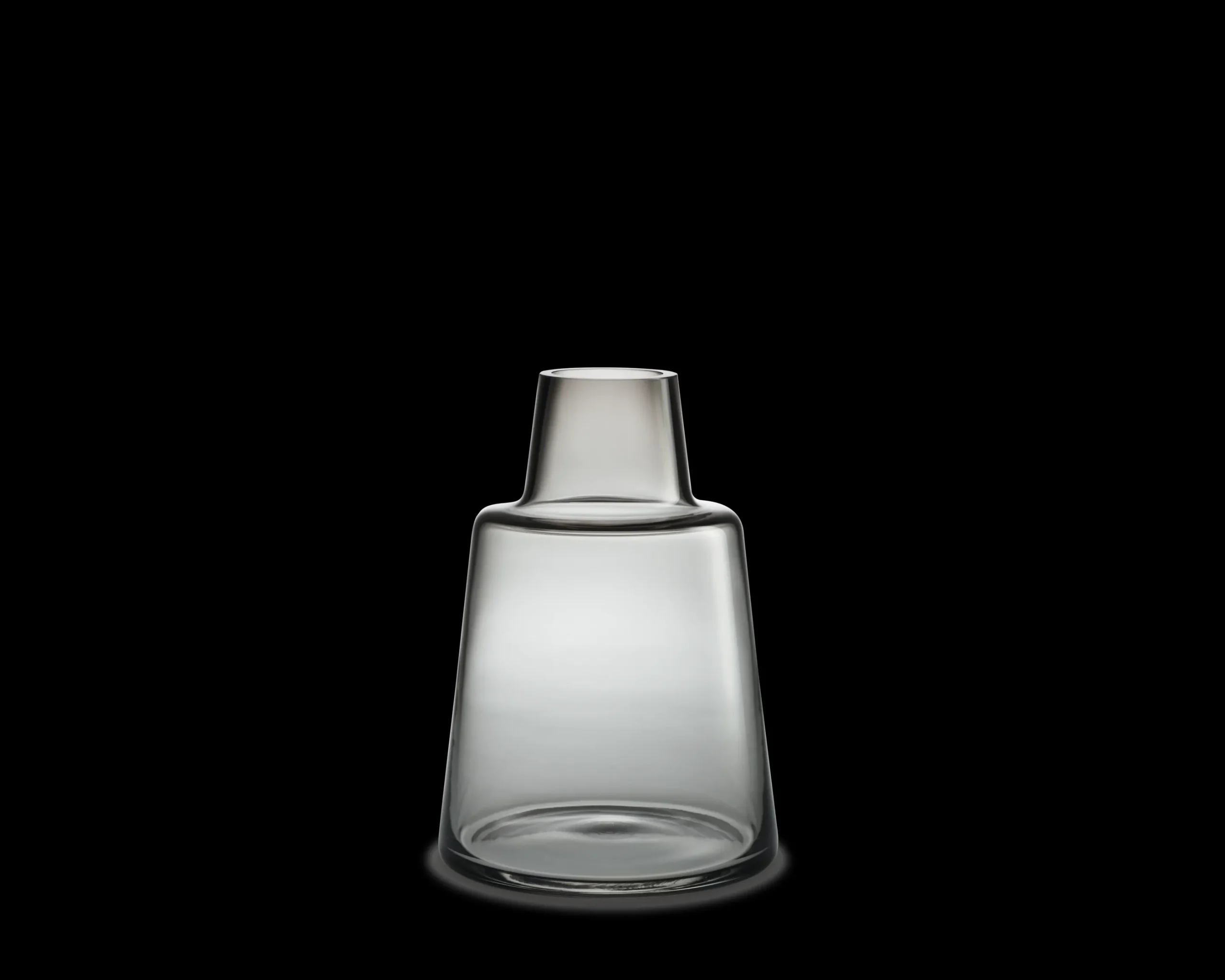 Denne Flora-vasen i smoke, munnblåst glass måler 24 cm. Den prisvinnende designeren Louise Campbell har laget vasen basert på en tanke om at friske blomster skal ha rikelig med vann. Den romslige bunnen harmonerer med den slanke åpningen som passer til en langstilket blomst.