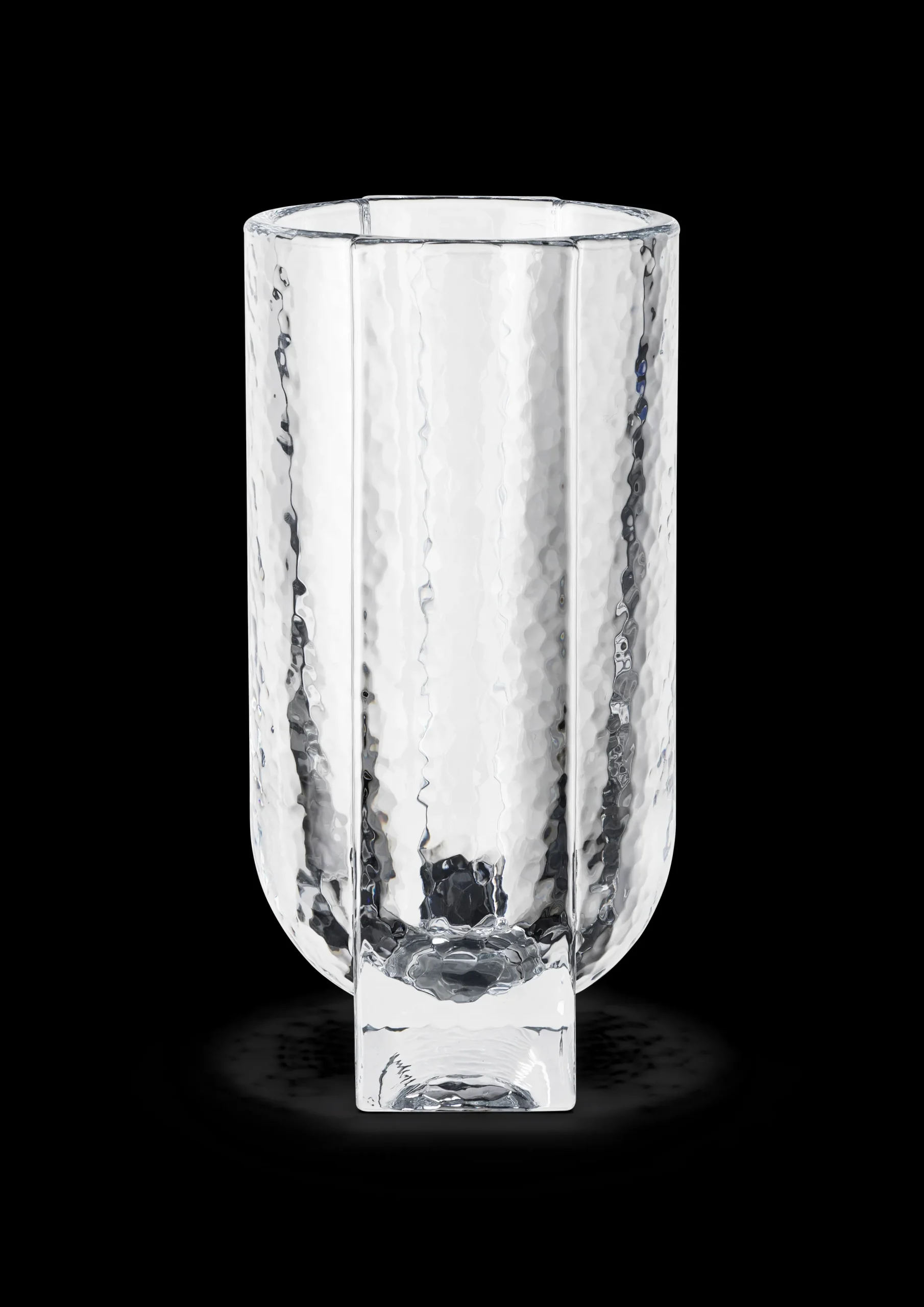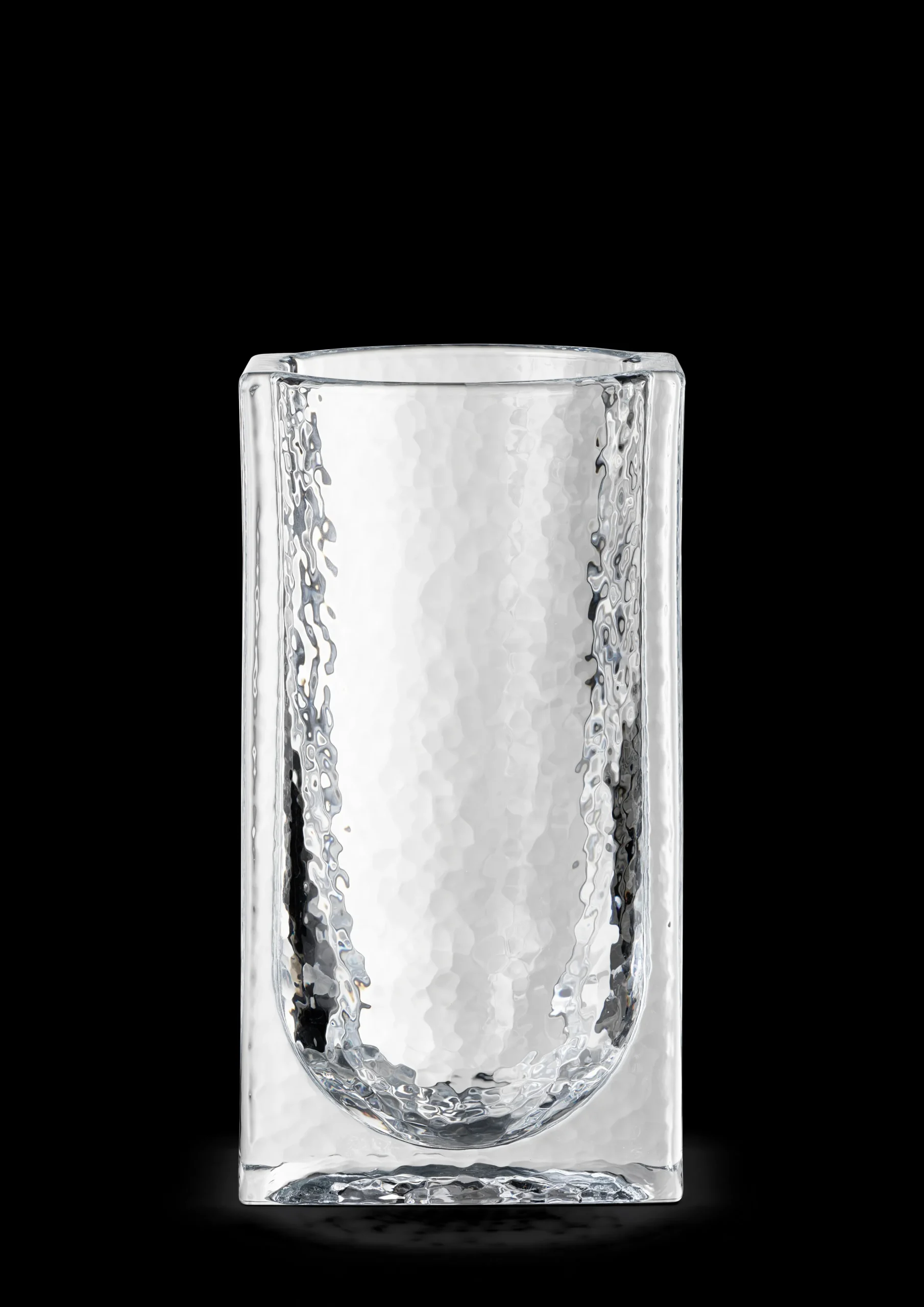 Med sine tunge, skulpturelle konstruksjoner i massivt glass er Forma en produktserie med røtter i den historiske Bauhaus-tiden, hvor kuber, kuler og sylindere fungerte som primærformer. Forma har samme grafiske styrke i form av massive geometriske former som er støpt inn i hverandre. Vasen har en høyde på 20 cm og er laget av klart, presset glass. Glasset har en strukturert overflate på hver side, noe som gir en subtil kontrast til de solide og strenge geometriske formene. Vasen er skulpturell og dekorativ, hvilket gjør den til en statement-vase. Den passer godt alene eller sammen med andre Forma-produkter.