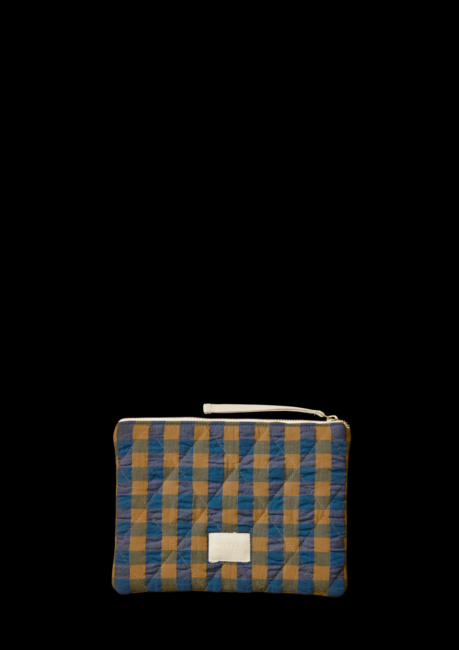 Dalila Toalettveske måler 20×14 cm og kan brukes til sminke, reisedokumenter, skrivesaker eller andre mindre gjenstander som du ønsker å holde orden på i vesken eller hjemme. Den lille pungen er sydd i 100% økologisk Bæku0026Bølge-bomull, i fargekombinasjonen blå/oker. Som en del av JUNAs bærekraftige designfilosofi er pungen produsert av overskuddsstoff fra produksjonen av JUNA-sengetøy.