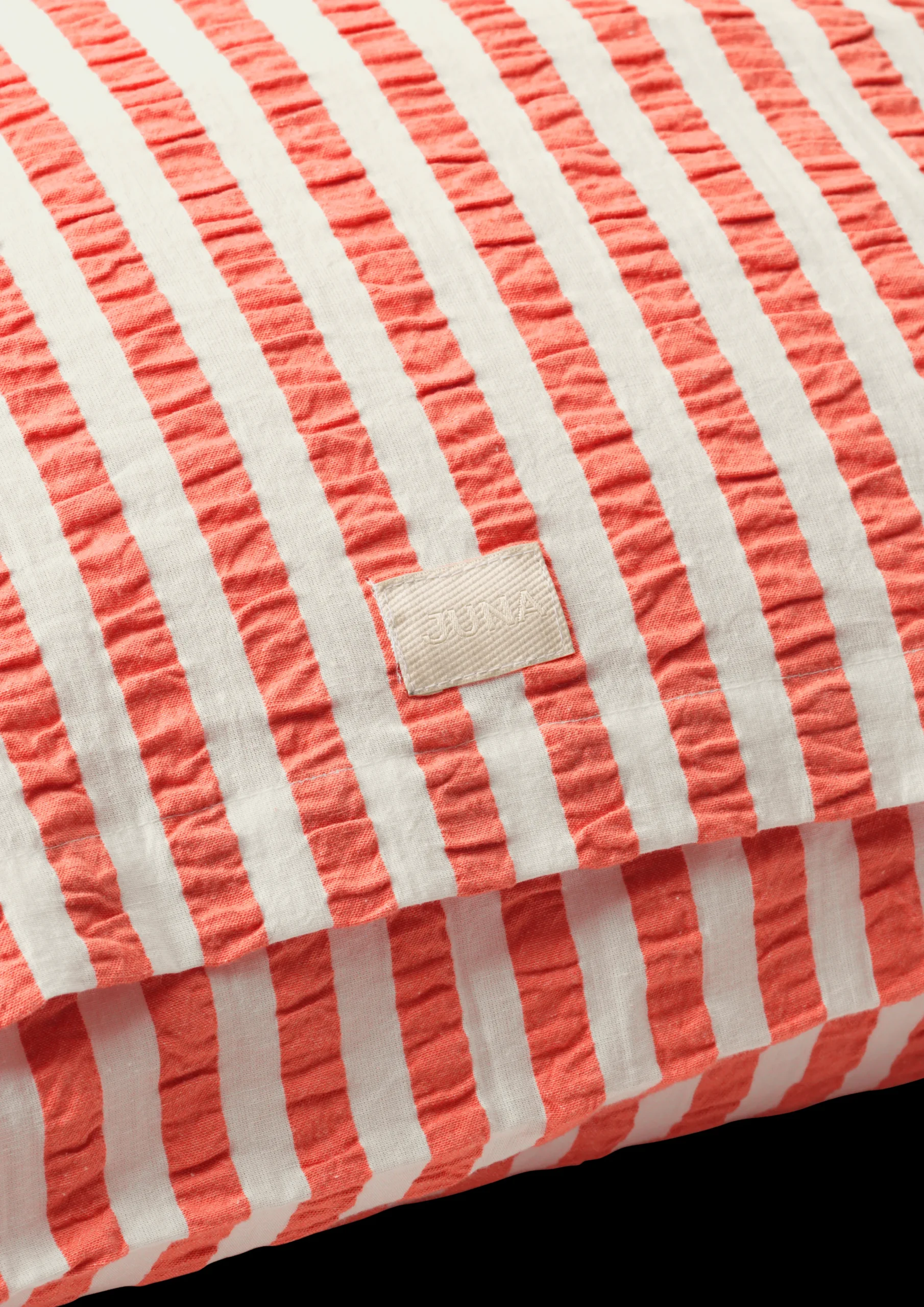 Du tilbringer mange timer i sengen hver natt, og det betyr noe hvilke stoffer du omgir deg med. Juna-sengetøyet er laget for å være sanselig og komfortabelt, er 100 % økologisk og lar deg sovne trygt og komfortabelt hver natt og få en god natts søvn. Juna handler om å nyte livet og gleden av et sengetøy som gjør livet vakrere, mykere, mer fargerikt og morsommere. Derfor er mønster og farger en stor del av Juna, og gir sengetøyet en koselig og avslappet følelse. Den velkjente og klassiske stripete vevingen tolkes i en moderne fargepalett, og det er denne kombinasjonen av den nostalgiske og moderne følelsen som bidrar til å skape en unik og glad Juna-atmosfære på soverommet. Stripete Bæk u0026 Bølge i chili/bjørk har vakre sommerfarger som minner om stripete vintage fluktstoler og parasoller. Putevaret måler 63 x 60 cm, har konvoluttlukking og er laget av 100 % økologisk bomull som er både OEKO-TEX®-merket og GOTS-sertifisert. Putevaret har konvoluttlukking. Hvis du har et annet Juna-sengetøy hjemme, kan du mikse og matche ulike farger og mønstre og skape din egen personlige og lekne stil på soverommet. Takket være vevemåten, har Bæk u0026 Bølge en seersucker-struktur som lar luften sirkulere mellom huden og dynen – perfekt for varme sommernetter. Luftstrømmen bidrar til å gi deg en god natts søvn og til at du våkner uthvilt neste dag, klar for en ny dag. I tillegg er det ikke nødvendig å stryke sengetøy laget av seersucker, så du kan la den varme sommerbrisen tørke det og legge det på sengen rett fra klessnoren.