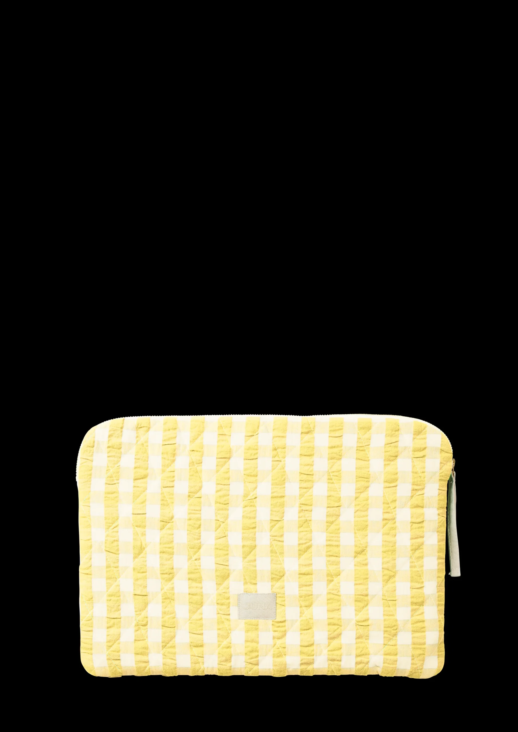 JUNA handler om gleden ved å omgi seg med tekstiler som gjør livet vakrere, mykere, mer fargerikt og morsommere. Og med Bæku0026Bølge Pondus fra JUNA får du et smart quiltet sleeve, som med en størrelse på 38×28 cm passer perfekt til din bærbare datamaskin på 15 tommer. Det både holdbare og praktiske Pondus-computersleeve er sydd i 100% GOTS-sertifisert Bæku0026Bølge-tekstil i fargekombinasjonen gul/hvit, mens innsiden er foret med 100% økologisk bomull. Og som en del av JUNAs ansvarlige designfilosofi er sleevet naturligvis som alltid produsert ut fra sirkulære prinsipper av overskuddsstoff fra produksjonen av JUNA-sengetøy. Det tåler maskinvask opp til 40 grader, noe som ikke bare er skånsomt for miljøet, men også for bomullsstoffet, som får lengre levetid ved den lavere temperaturen.