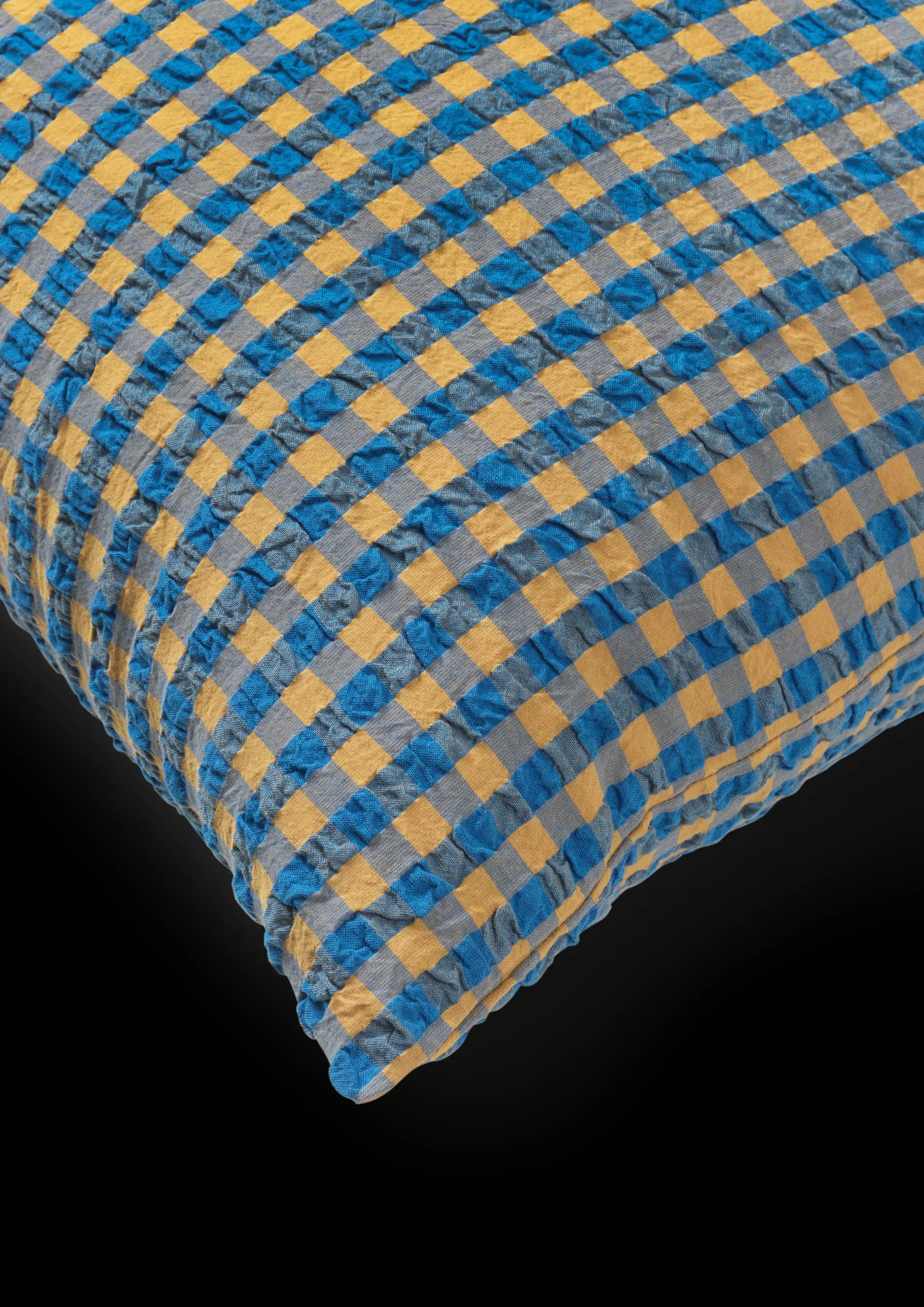 Det nye rutete Bæku0026Bølge sengesettet kommer i fargen blå/oker. Blå har en varm og avdempet friskhet over seg, mens oker gir en dybde og ro som minner om en gåtur ved skog og strand på en vakker høstdag. Materialet er 100 % økologisk bomull, som både er OEKO-TEX®-merket og GOTS-sertifisert – og så er det i tillegg strykefritt. Putevaret har konvoluttlukking, mens dynetrekket lukkes med knapper. Har du flere forskjellige sengesett fra JUNA, kan du mikse og matche de forskjellige fargene og mønstrene på kryss og tvers og skape din helt egne stil på soverommet.