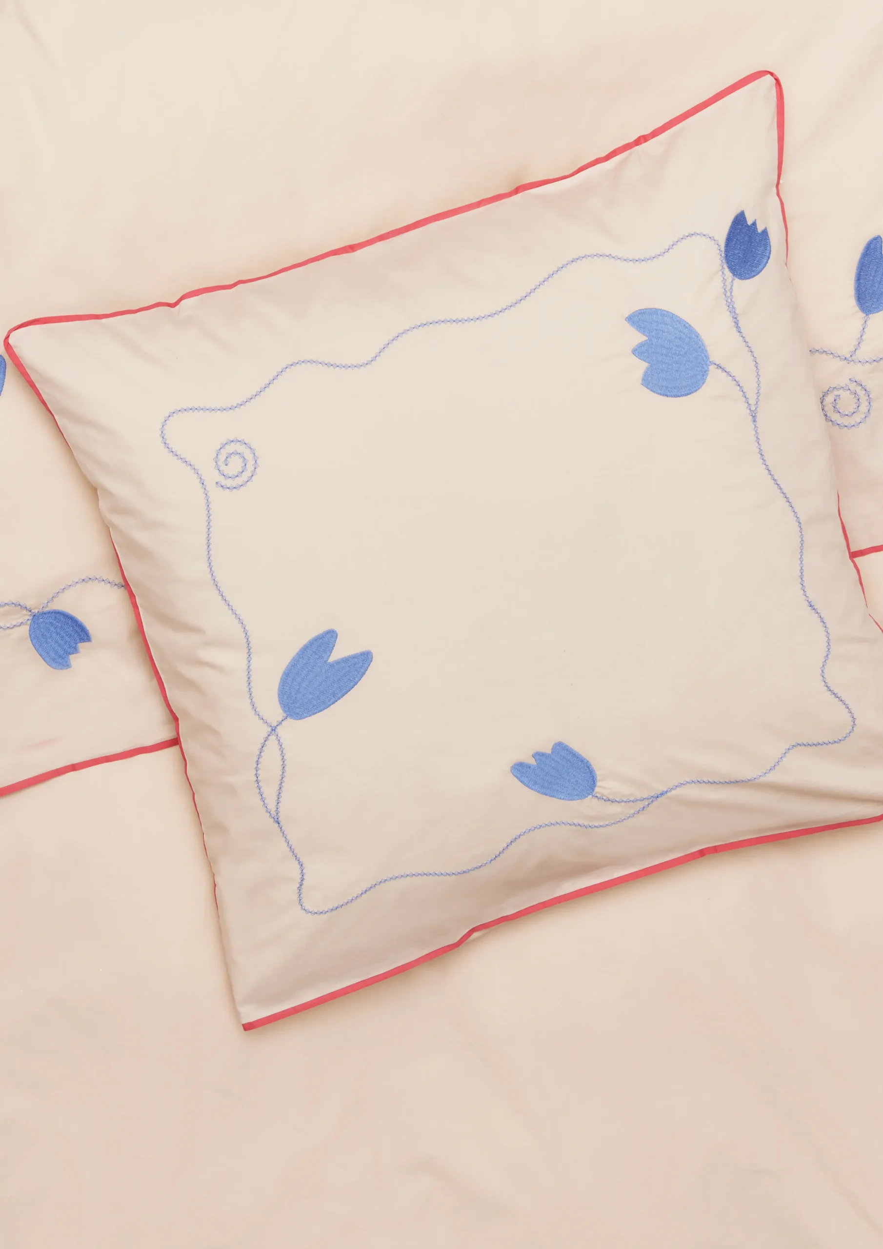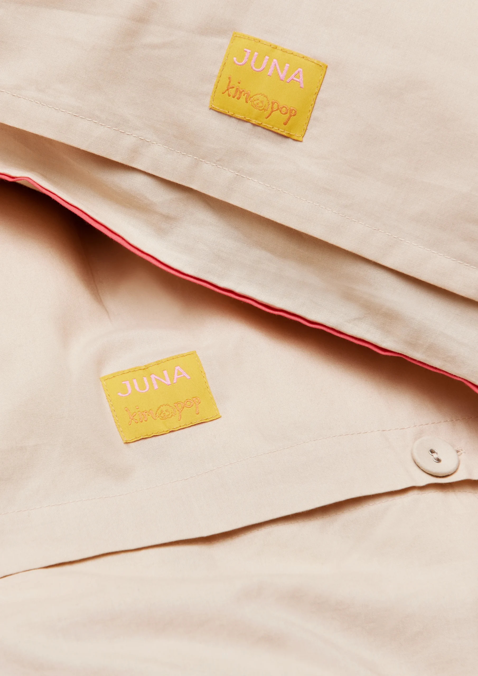 Med designsamarbeidet JUNA X KIMPOP tolker de fargerike personlighetene Sofie Linde og Joakim Ingversen JUNAs drømmende univers i sin fargerike, lekne og unike stil under navnet KIMPOP. Deres første kolleksjon, Lollipop, byr på bølgende kurver, overraskende linjer og moderne fargekombinasjoner som skaper en fargerik og fantasifull stemning på soverommet, i sofaen, i lenestolen, på dagsengen eller der du ellers slapper av i nattøy med dyne og pute. Akkurat som JUNA ønsker Sofie Linde og Joakim Ingversen å skape en hyggelig og uhøytidelig følelse med tekstildesign som inspirerer til store drømmer i fargerike omgivelser. Hele Lollipop-serien er dessuten produsert i 100 % økologisk bomull, og tekstilene er GOTS-sertifisert, noe som betyr at du er sikret en ansvarlig produksjon og tekstiler av høy kvalitet utviklet med omtanke og omsorg for både miljø og mennesker. Sengesettet i fargen sand måler 140 x 220 cm og har en fremtredende rød pyntekant hele veien rundt, som står i vakker kontrast til stoffets dempede sandfarge. I tillegg er både putetrekket og dynetrekket dekorert med broderte detaljer i stil med moderne marmor. En blå blomsterranke bølger som en gammeldags blonde i en ny fortolkning, og dynetrekket er dekorert med en søt regnbue som samler alle farger på tvers av hele JUNA X KIMPOP-kolleksjonen. Alt i en herlig, umiddelbar stil. Og så gjør det jo heller ikke noe at sengetøyet også er OEKO-TEX®-merket, som er din garanti for at sengetøyet ikke er skadelig for helsen din og samtidig også mindre belastende for miljøet. (GOTS «Organic» Certified by Control Union, CU1026087)nu003cbru003eVi anbefaler alltid at du vasker sengetøyet ditt før bruk.