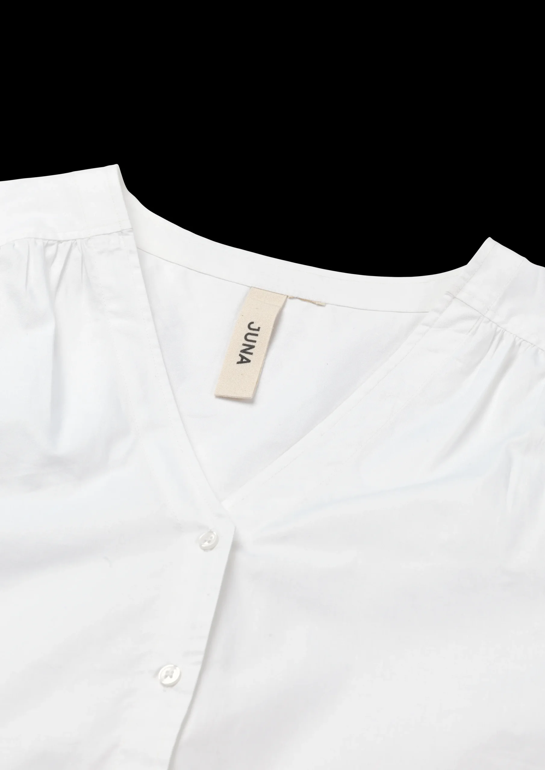 JUNAs Garderobe er fylt med lett og luftig sommertøy som både kan brukes som nattøy på varme sommernetter og som en del av en uformell sommergarderobe til lange sommerdager i hagen og når du er ute på sommerlige eventyr. Som støtte for JUNAs bærekraftige designfilosofi brukes overskuddsstoffer fra sengetøyproduksjonen til JUNAs Garderobe, og akkurat dette stoffet er det siste i sitt slag på JUNAs lager. JUNA Soft har en unik struktur og kvalitet som nærmest svever over huden – stilfullt og elegant. Stoffet kommer i hvitt som passer til alt og ser vakkert ut mot solkysset hud. Adele-skjorten har flere sofistikerte detaljer, som V-hals, knapper, legg på skuldrene og på øvre del av ryggen, samt ballongermer. Skjorten har en uformell og feminin look med en komfortabel følelse, men i en markant design og en utsøkt kvalitet som gjør at den skiller seg ut. Produktene i JUNAs Garderobe er alltid fremstilt i 100 % økologisk bomull, produsert i henhold til EU-standarder og kan vaskes i maskin på 40 °C, noe som gjør at klærne varer lenger enn ved vask på høyere temperaturer – samtidig som det har mindre påvirkning på miljøet. Vær oppmerksom på at dette produktet er stort i størrelse.
