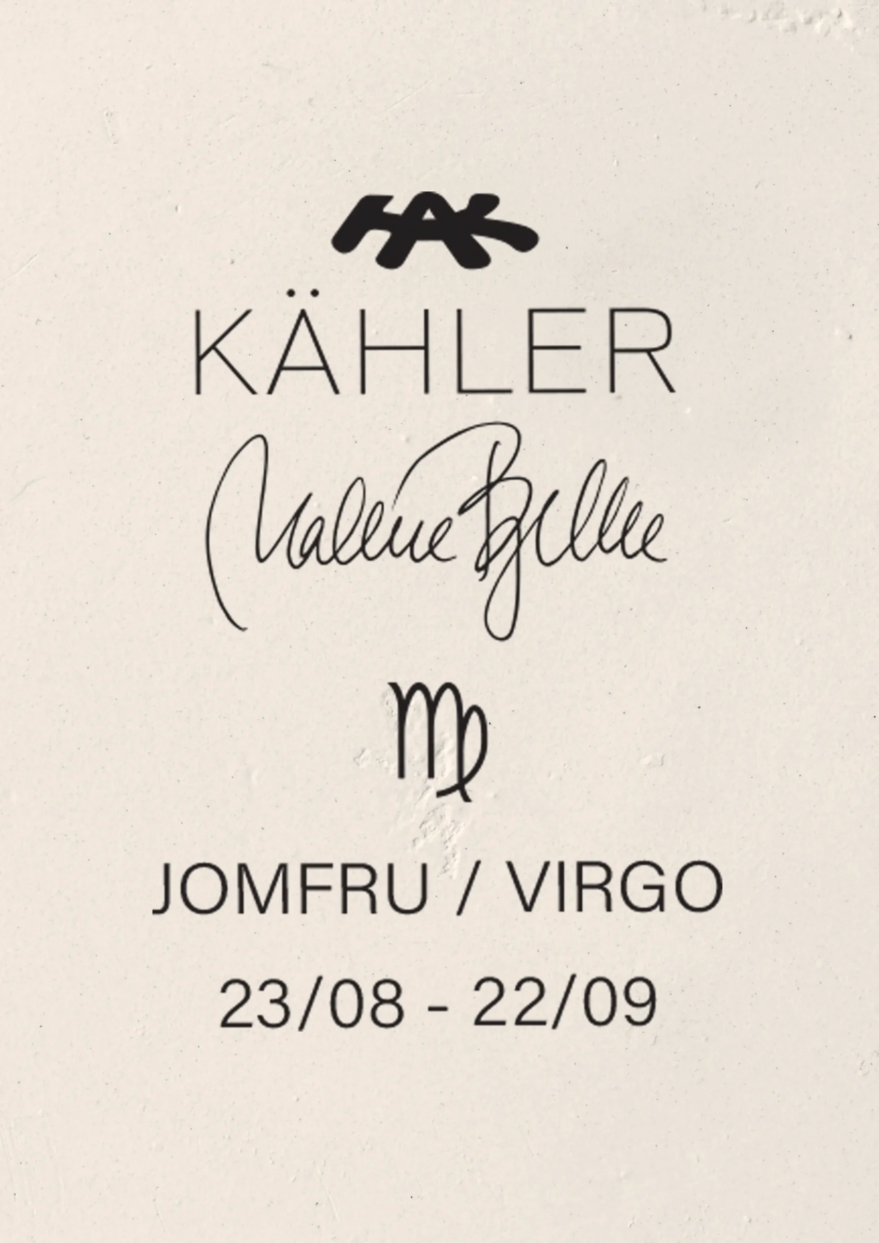 Med de nye Astro-skulpturene fra Kähler har den danske billedhuggeren Malene Bjelke hentet inspirasjon fra Kählers mangeårige figurhistorie og skapt 12 forskjellige stjernetegnsskulpturer, som på vakkert vis fører designarven fra Kählers historiske keramikkverksted inn i vår moderne tid med et spirituelt fokus. Alle stjernetegnsfigurene er fremstilt i hvitt uglasert stentøy og står i en skissert look. Det rå uttrykket medvirker til å skape dynamikk i figurene som naturalistiske enkeltheter, slik at de fremstår som skulpturer som kan oppleves fra alle sider. Hver enkelt Astro-skulptur er skapt med et beskrivende ord ut fra de verdiene som er knyttet til hvert av de 12 forskjellige stjernetegnene. Energien fra stjernetegnenes unike egenskaper er bragt inn i formgivningen av figurene. For Astro Jomfruen-skulpturen er det ordet Perfeksjon som kommer til uttrykk i figurens positur og er med på å beskrive stjernetegnets unike trekk. Vi anbefaler å legge filtputer under produktene dine for å unngå riper. Spesielt hvis de er plassert på en delikat overflate.
