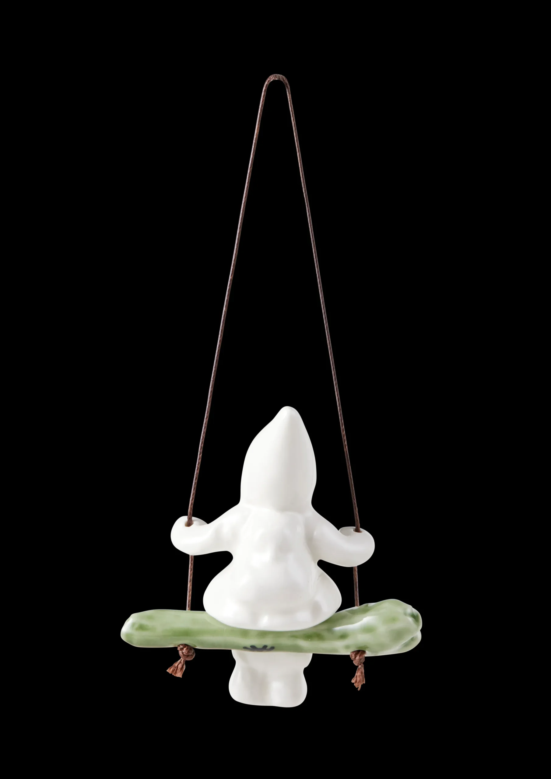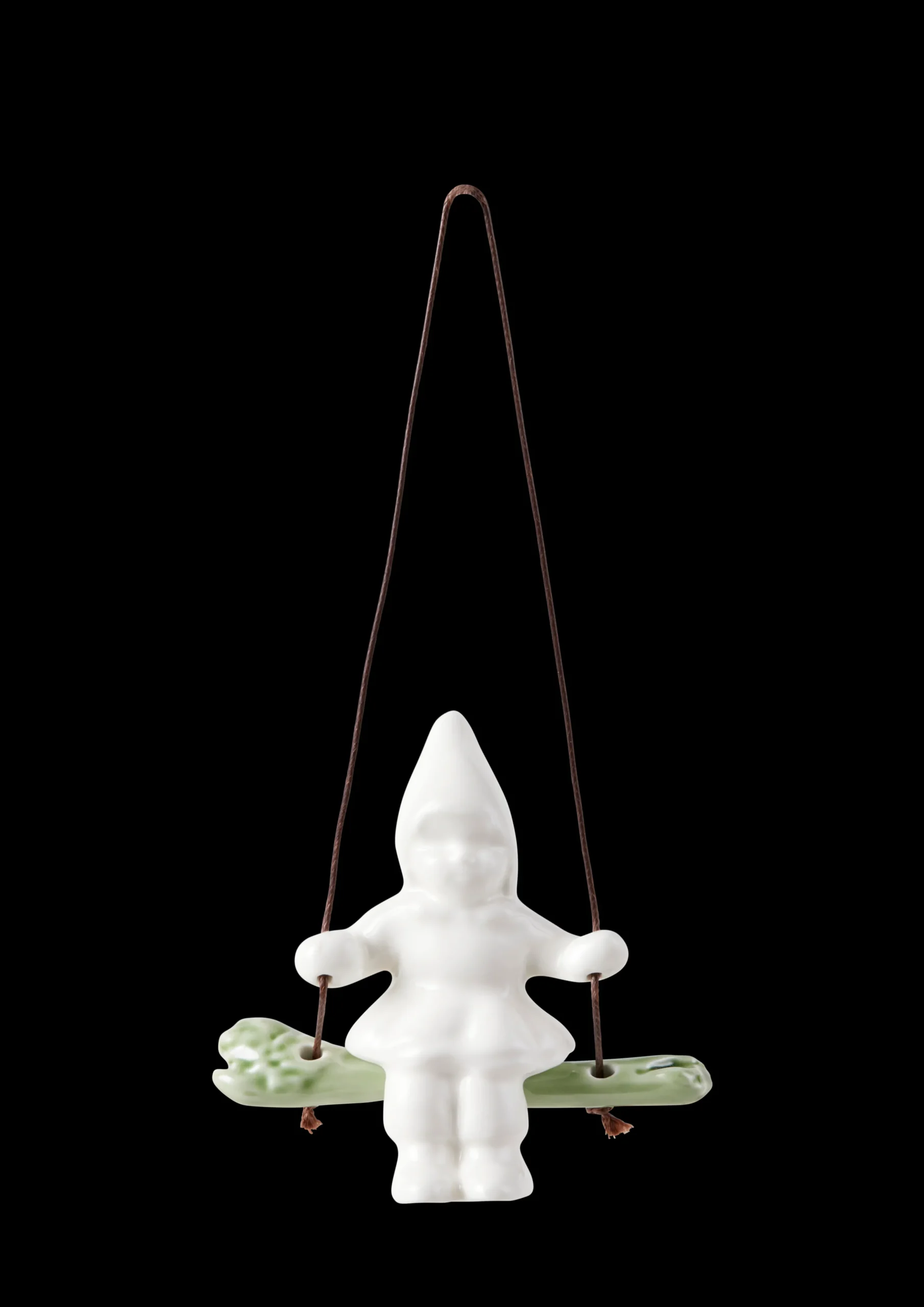 Furukongler og kristtorn er noen av naturens elementer som mange forbinder med julen. Vi samler kongler til små dekorasjoner, og vi skjærer grener av kristtorn til våre vaser, dører og kranser. Naturen er full av julemagi. Og denne julemagien er nettopp det keramikeren Thora Finnsdottir har skapt i Christmas Tales-serien fra Kähler, der hun har designet denne Gyngende jente i form av en hvitglasert jente i keramikk, kledd i julelue og tresko. På sin lille huske, skapt i en matt grønnfarge som matcher naturen, nyter hun julens ro og de mange koselige øyeblikkene. Alle figurene i serien er laget av keramikk og har et mykt og enkelt uttrykk. Uttrykket er rolig og tidløst, og forskjellige fargede glasurer i naturlige og nordiske nyanser er brukt rundt seriens nissefigurer. Gjennom keramikken har Thora Finnsdottir gitt nytt liv til naturens strukturer og former ved direkte avstøpning av kongler og trestubber. Julefigurene og hengepynten fra Christmas Tales er en perfekt gave. Når vi sender ut julekort med kjærlige hilsener, kan vi også glede våre nære og kjære med en dekorativ figur som får oss til å stoppe litt opp og vise takknemlighet for høytiden og hverandre.