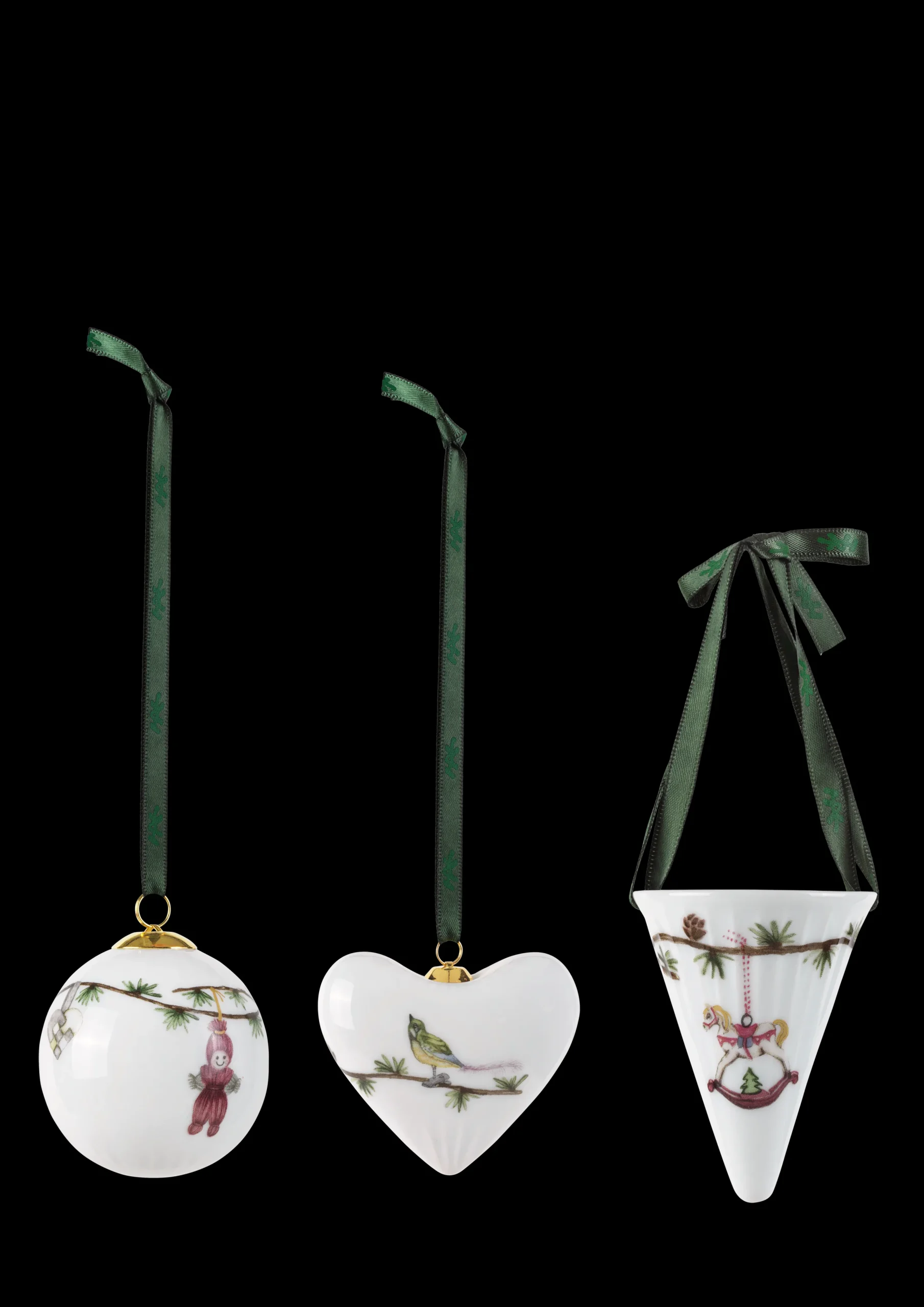 Hammershøi Christmas er en klassisk serie fra Kähler, og her er et vakkert julepyntsett med den allerede kjente julekulen, kremmerhus og hjerte. Julekulene fra Kähler Hammershøi har spesielt vakre motiver. Skap julestemning ved å henge dem i vinduet, eller heng flere kuler på grener plassert i en vase. Juledekorasjoner fra Hammershøi er skapt med inspirasjon fra julepynt og elementer fra naturen. Dekorasjonene er nostalgiske juleelementer som fugl, nisse, kanelstang, gyngehest, mens den grønne lerkegrenen skaper kontinuitet i designen. Motivene er tegnet med en moderne strek som vekker minner om julen i gamle dager. Vakker design kombinert med dekorativ eleganse.