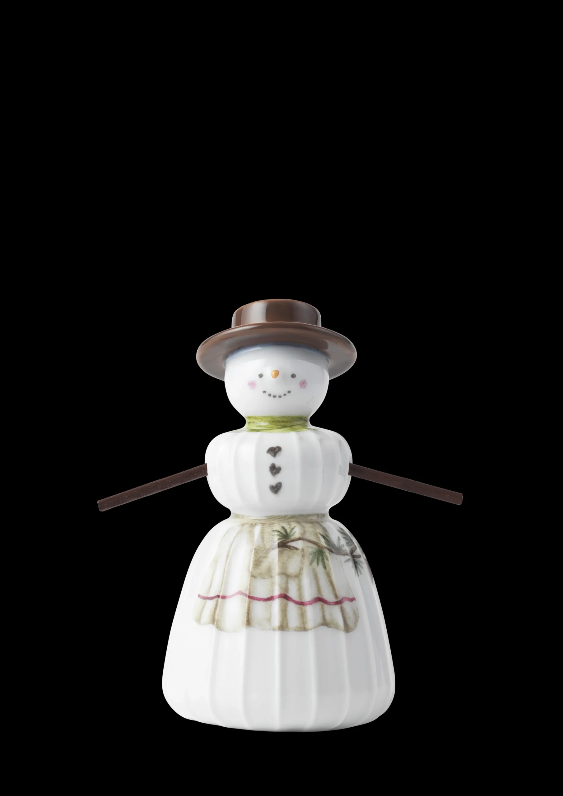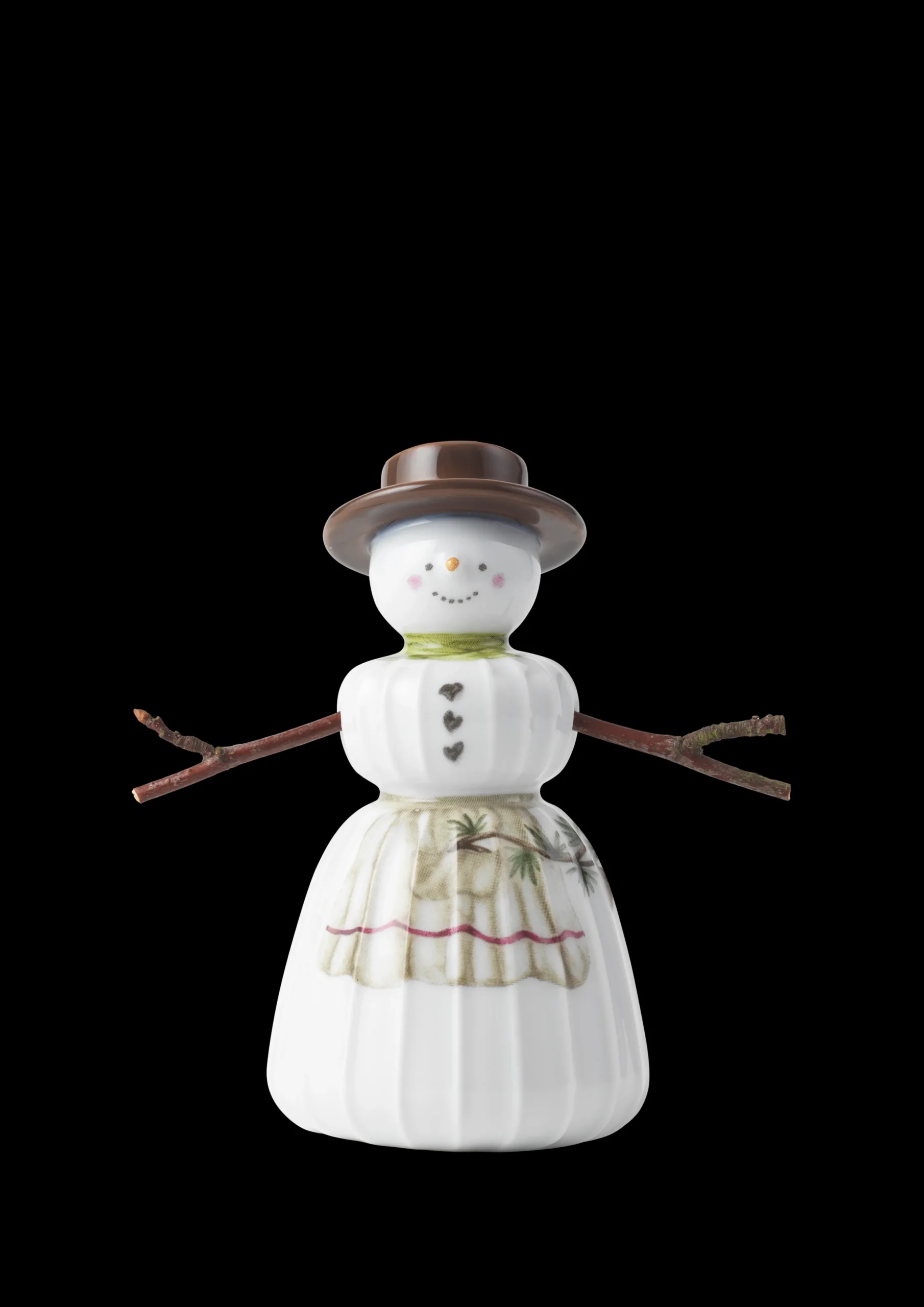 Juletradisjoner og håndverkstradisjoner i herlig forening. Med familien av snømenn fra Kählers juleserie Hammershøi Christmas bringer du enkelt og autentisk julestemningen inn i boligen med glade smil og hyggelige julemotiver som matcher seriens øvrige deler og fullender julehyggen. Samtidig kan du nyte nostalgien i Kählers håndlagde designtradisjoner. Ta en tur i hagen, parken eller skogen og finn dine egne små kvister som kan brukes som armer til seriens søte figurer. Kanskje som en ny, koselig juletradisjon den 1. desember. På den måten blir snømennene enda mer personlige og meningsfulle. Vær oppmerksom på at de medfølgende armene til både den stående og hengende familien av snømenn utelukkende er vedlagt som inspirasjon til hvordan du kan personliggjøre dine Kähler-snømenn i din helt egen DIY-stil. Snøkonen har selvfølgelig på seg en høy hatt, slik vi forbinder det med en klassisk snømann. Hun måler 11 cm i høyden og 6 cm i diameter og er utformet i myke linjer med Hammershøi-seriens ikoniske riller, som kjennetegner Hans-Christian Bauers servise og bordpynt. Denne modellen er den stående versjonen av Snøkonen, men du finner henne også hengende. Valget er ditt. Skap ditt eget snølandskap i vinduet, på hyllen eller på julebordet, eller la hele familien pynte juletreet eller vakre grener i en flott vase. Kählers snømannfamilie består av Snømannen, Snøkonen, Snøgutten og Snøjenta, som alle er dekorert på forskjellig måte med motiver fra Hammershøi Christmas-serien malt i akvarell av Rikke Jacobsen og overført til det snøhvite porselenet. Motivene er klassiske julemotiver som julehjerter, kremmerhus og gaver i en autentisk, hyggelig og håndmalt stil, som du ikke kan unngå å komme i helt riktig julestemning av.