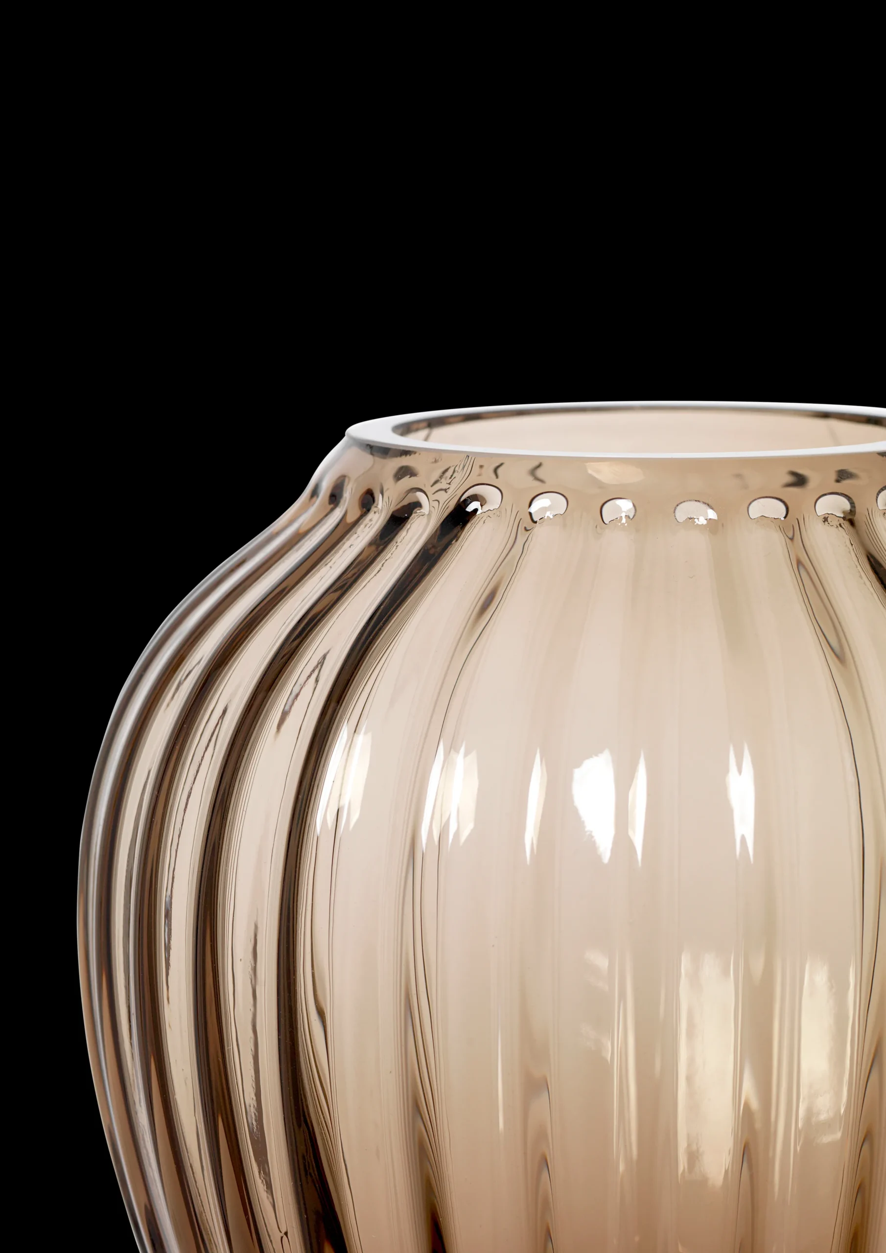 Kähler Hammershøi-seriens glassvaser har den karakteristiske profileringen og tydelige rillene fra Hammershøis keramikkvaser. Glassvasen har en vakker silhuett, men likevel en tyngde og stabilitet. Den kommer nå i en vakker og varm valnøttfarge, hvor dybden av den brune fargen harmoniserer med de andre Hammershøi-seriene på en vakker måte. Glassvasen er munnblåst i størrelse H14 cm. Tilføy det eksklusive og kreative uttrykket til bordsettingen med de elegante vasene fra Hammershøi. Kombiner glassvasene med Hammershøi-serien i porselen, og tilføy denne nye og spennende dimensjonen til bordsettingen. Design Hans-Christian Bauer.