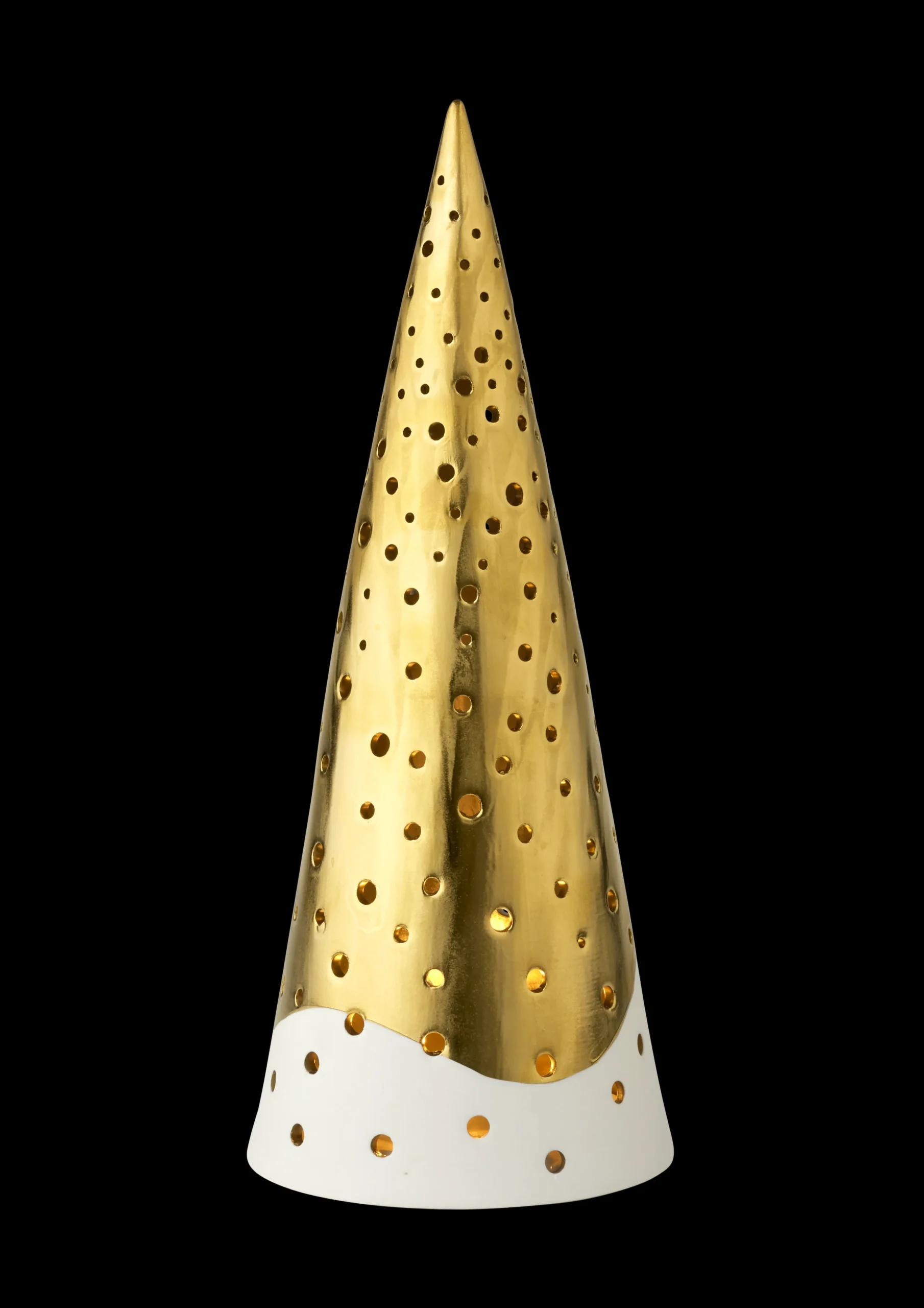 Denne julen har en ny farge i sateng-gull funnet vei til Kählers Nobili-serie av kjegleformede telysholdere og kremmerhus. Den klassiske julefargen gir serien et varmt og koselig preg. Telysholderne kommer i tre størrelser, mens kremmerhusene i serien kommer i to størrelser med hank i messing-look. Gjennom de håndskårne hullene kommer lyset til live som silhuetter på hjemmets mange flater. Det er designerne Mette Bache og Barbara Bendix Becker som har formgitt serien ut fra et ønske om å bringe et lekende uttrykk til desembers innredning med håndlagede juletradisjoner i keramikk. Og i designet lekes det med den blanke og taktile glasuren som får motspill av den rå, uglaserte keramikken som preger både holderne og opphenget.