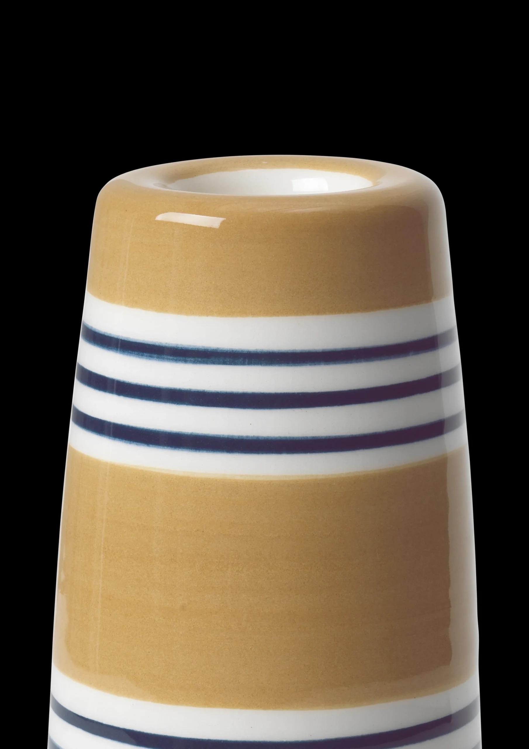 Du har kanskje allerede invitert naturen innenfor med en bukett blomster eller en potteplante som står vakkert og stilfullt plassert i en vase eller en blomsterpotte fra Omaggio Nuovo-serien? Med introduksjonen av to Omaggio Nuovo-lysestaker i to størrelser og to fargekombinasjoner gir Kähler deg nå enda flere muligheter for å kombinere kjærligheten til keramikk med kjærligheten til blomster, planter og levende lys. Den store lysestakene kommer i oker og måler 16 cm, mens den litt mindre på 12 cm har en mørkeblå bunnfarge og smale, lyseblå striper. Begge står vakkert til med dybde og liv i de håndmalte stripene og glasuren, så de får «stripene i stripen» som kjennetegner Omaggio Nuovo og trekker tråder tilbake til Kählers stolte håndverkstradisjoner.
