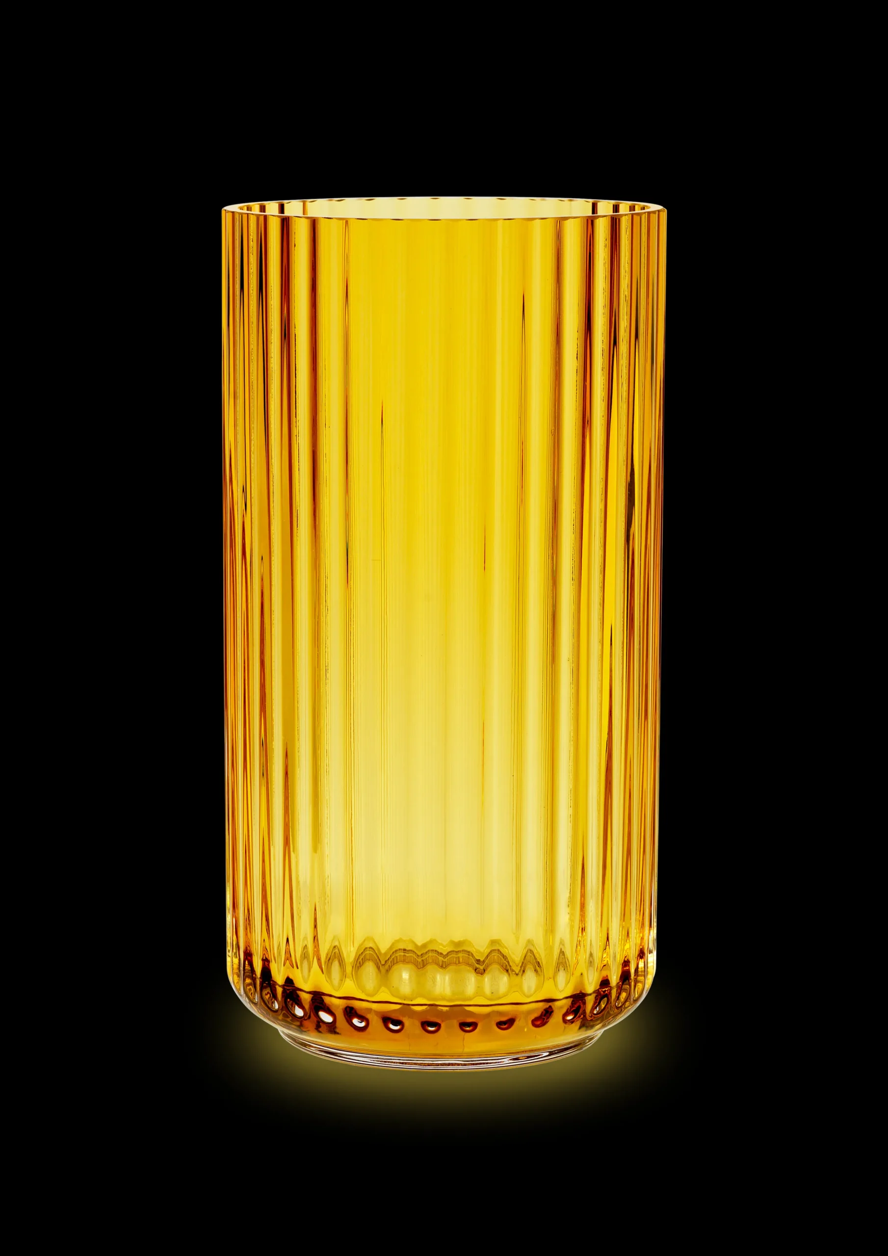 Den karakteristiske Lyngby-vasen i munnblåst glass i en vakker varm ravfarge er en ekte designklassiker. Med sitt enkle og minimalistiske uttrykk er vasen perfekt til fargerike blomster og grener. Glassvasen på 20,5 cm tar seg også flott ut på spisebordet eller sofabordet. Lyngby-vasen er et av de mest ikoniske produktene fra Lyngby Porcelæn. Den sylindriske hvite vasen ble designet ut fra 1930-tallets ideologi om å forene form og funksjon. Vasen skulle ha en enkel form og være funksjonell. Selv om de fleste forbinder Lyngby Porcelæn bare med porselen, har glass alltid vært en viktig del av vårt DNA. Porselænsfabriken Danmark – Lyngby Porcelæn ble i sin tid grunnlagt av glassgrossister. Derfor finner du også Lyngby glassvaser i sortimentet vårt. La Lyngby-vasen med de ikoniske rillene få en vakker plass i hjemmet ditt.
