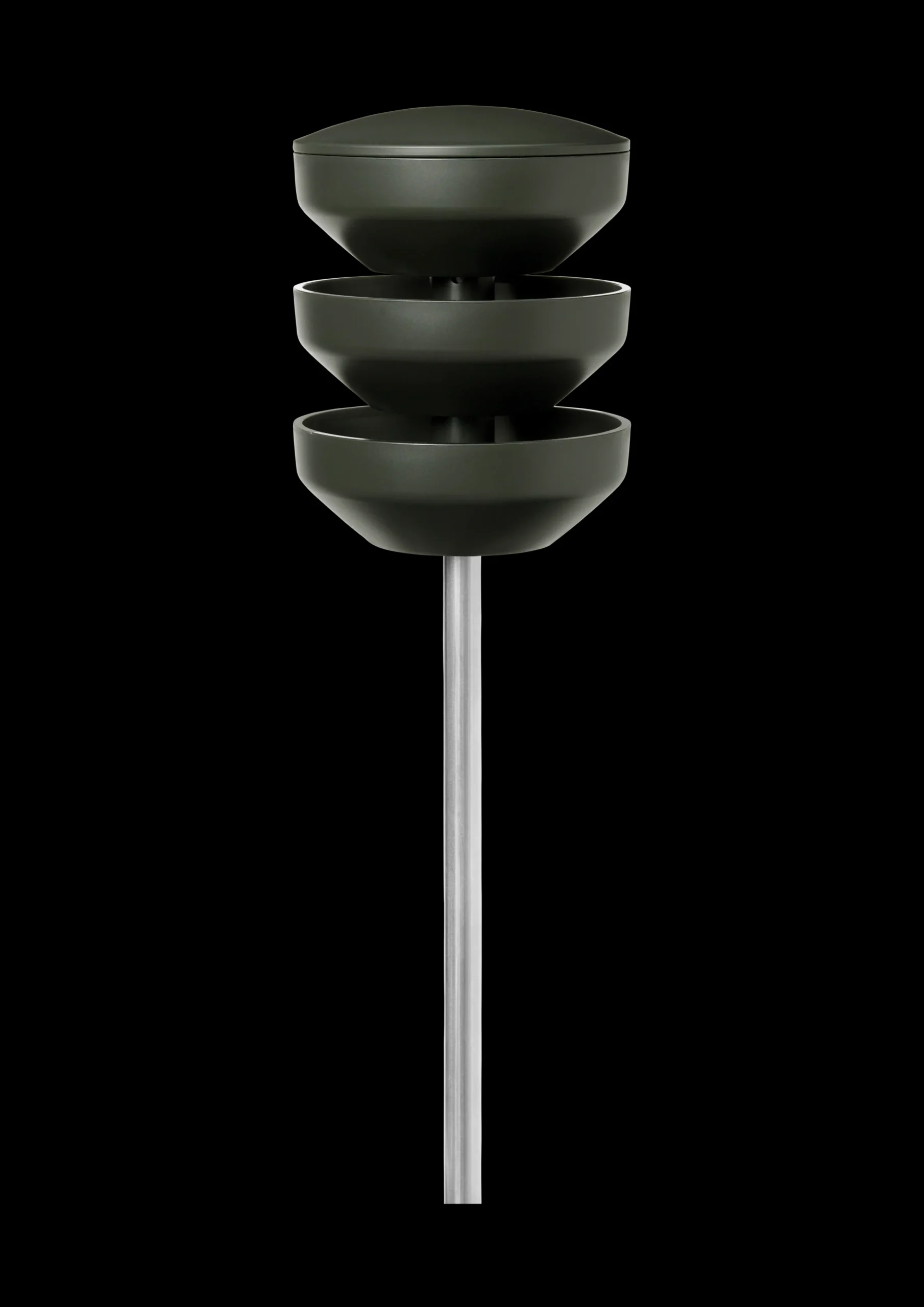 Rosendahl Birds skaper liv og fuglesang i hagen. Ønsk vinterens småfugler velkommen med god, grønn samvittighet. Birds matstasjon tilbyr overdådig fôring i flere etasjer. Den er enkel å fylle på fra toppen, hvorfra frøene drysser ned gjennom skålene. Den er designet i en naturinspirert fargeskala, slik at den passer harmonisk inn i hagen. Det er dreneringshull i bunnen, slik at regnvannet renner bort. Den er også brudd- og frostsikker. Rosendahl Birds er skapt med en ambisjon om å redusere miljøpåvirkningen og bidra til sirkularitet. Vi ønsker å gjøre det enkelt å ta ansvarlige valg med Rosendahl-serien. Birds er fremstilt i Danmark av gjenbruksplast som er samlet inn fra danske husholdninger, forarbeidet og produsert i Danmark. Det finnes flere produkter i serien. Her ser du Birds matstasjon på spyd.
